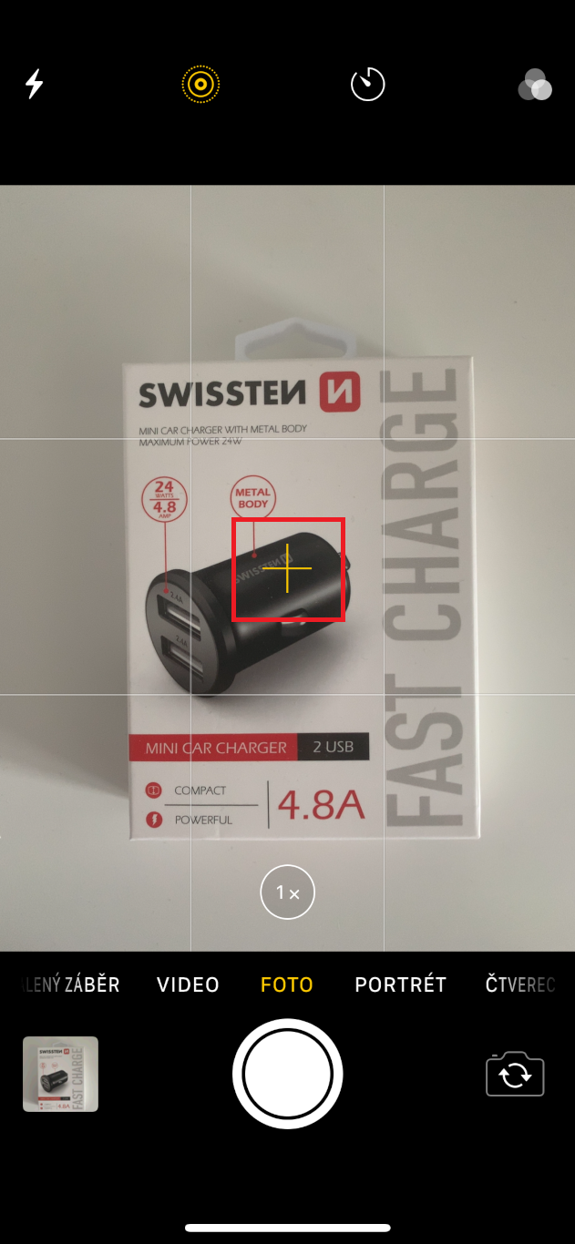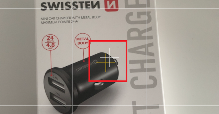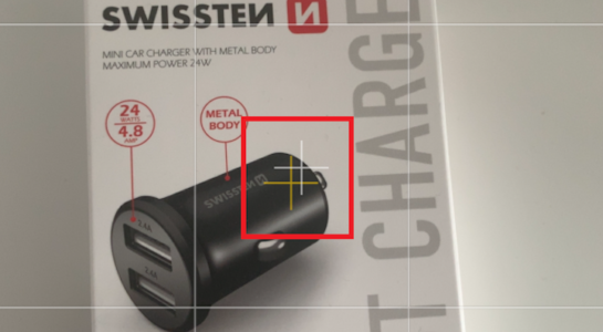 Polož focený předmět např. na stůl, telefon dej ve vodorovné poloze nad předmět. Pokud nebude telefon vodorovně, terčíky se neobjeví. Překřížené terčíky ti ukazují jestli máš telefon ve správné vodorovné poloze.
