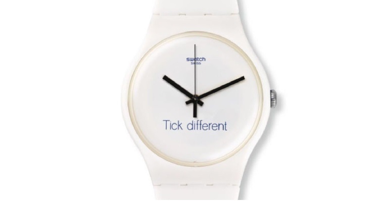 Není snad žádný fanoušek jablečné společnosti, který by neznal slogan „Think different“, který byl celosvětově používán v letech 1997 až 2002. Švýcarská hodinářská společnost Swatch přišla posléze s velice podobným sloganem „Tick Different“, jenž používala pro propagaci nových hodinek s NFC. Této skutečnosti si všiml Apple a brojil proti společnosti Swatch žalobou, neboť si frázi švýcarské společnosti dle názoru Applu jen těžko nejde nespojit s jeho nejslavnějším sloganem. Nicméně soud nyní rozhodl, že si Swatch může svůj slogan používat i nadále a žalobu Applu tak smetl ze stolu.