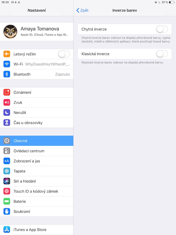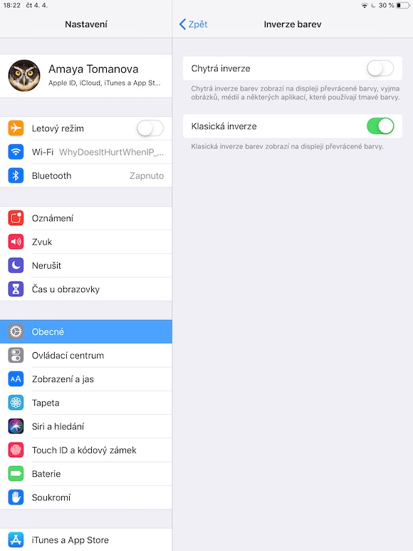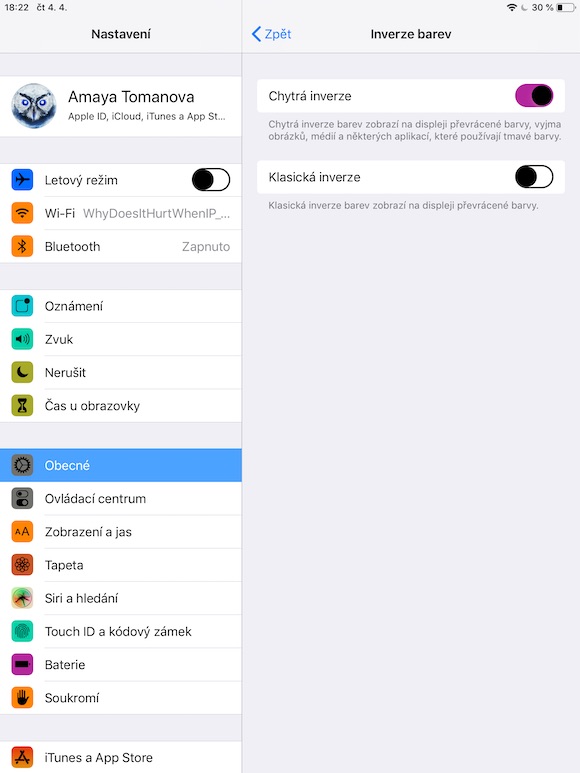 Inverzi barev zde lze použít jako jistou variantu režimu Dark Mode – zjednodušeně se dá říci, že při inverzi barev dojde ke ztmavení pozadí displeje, což může některým uživatelům značně zpříjemnit práci s tabletem i čtení. Pokud jste citliví na světlo, můžete také aktivovat snížení bílého bodu.