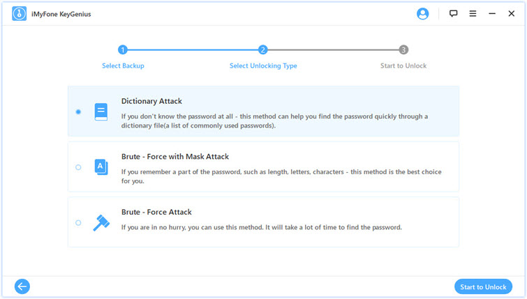iMyFone KeyGenius používá při odemykání zašifrovaných záloh iPhonu tři nejznámější dešifrovací metody. První z nich se nazývá Dictionary Attack, v češtině slovníkový útok. Při této metodě dochází k dešifrování pomocí předem nachystaných hesel ve slovníku. Uvnitř takového slovníku se nachází nejčastěji používaná hesla. Nejprve tedy KeyGenius vyzkouší, zdali není použito nějaké jednoduché heslo, které by se mohlo nacházet v seznamu. Tato metoda je velice rychlá. Pokud KeyGenius neuspěje, tak se vrhne do druhé fáze s názvem Brute – Force with Mask Attack, v češtině útok hrubou silou se známou částí hesla. Tuto metodu můžete využít tehdy, kdy znáte alespoň část svého hesla. V praxi to funguje tak, že pokud si navolíte heslo „pes123“ a zapamatujete si pouze část „pes“, tak to dáte programu vědět a nastavíte masku. Aplikace poté bude hledat pouze hesla, která začínají na „pes“ a mají dohromady šest znaků. Tímto můžete celý proces dešifrování výrazně urychlit.