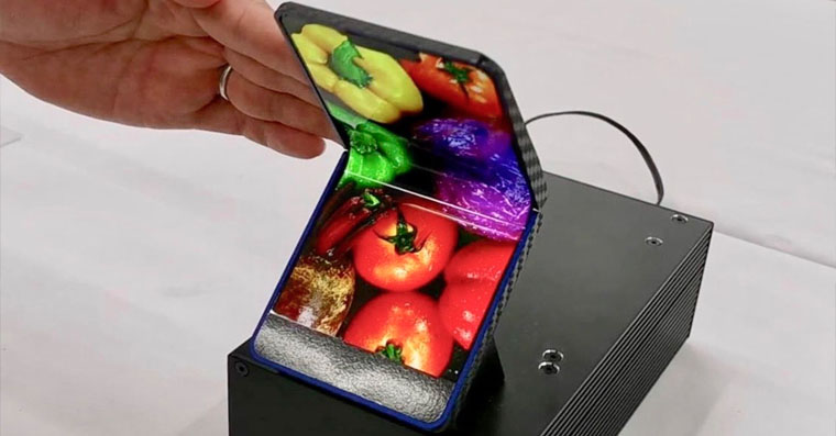 Společnost Sharp je další, kterou zaujaly ohebné displeje a možnost jejich využití v mobilních telefonech. Předvedla vlastní displej s rozlišením 2K a úhlopříčkou více než 6 palců. Maketa telefonu, na které byl displej předveden, připomíná klasické véčko a displej by tak u tohoto zařízení byl pouze na jeho vnitřní straně. Displej působí na první dojem velmi dobrým dojmem, otázkou zůstává, zda se ho dočkáme i na našem trhu.
