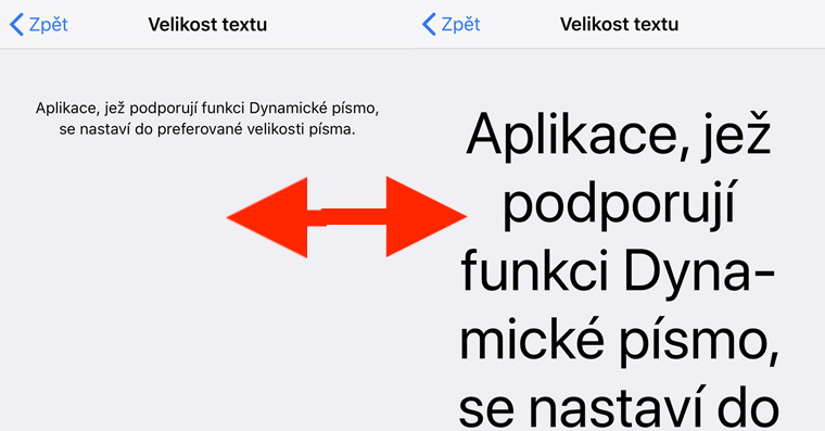 Jak už jste z úvodu mohli vydedukovat, tak v operačním systému iOS lze vcelku jednoduše změnit velikost písma. Tento krok učiníte tak, že na iOS zařízení otevřete nativní aplikaci Nastavení, kde se přesuňte do kolonky Zobrazení a jas. Zde klikněte ve spodní části na možnost Velikost textu. Poté se zobrazí jednoduché rozhraní pro změnu velikosti. Ve spodní části displeje si pomocí posuvníku můžete zvolit velikost textu, kdy se v horní části zobrazí náhled toho, jak velké se v iOS písmo zobrazí. Jakmile máte nastaveno, tak stačí pouze v horní levé části obrazovky kliknout na tlačítko Zpět.