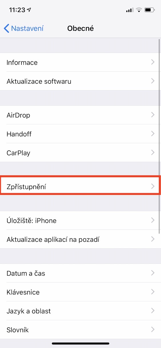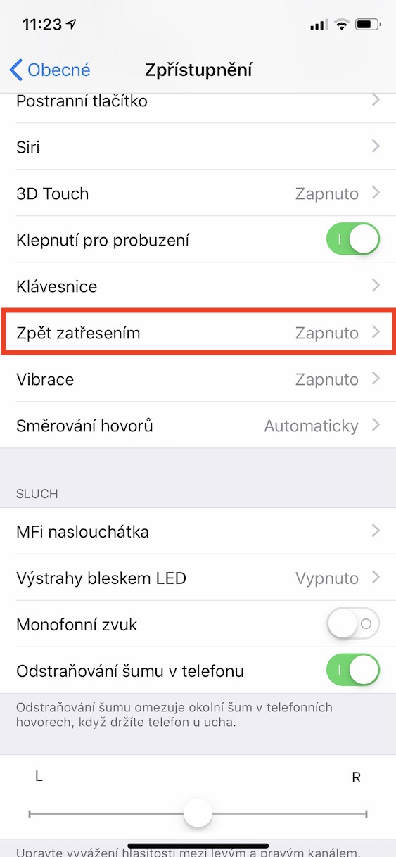 Pokud vám funkce Zpět zatřesením nevyhovuje, anebo ji máte z nějakého důvodu vypnutou, tak ji můžete (de)aktivovat v Nastavení. Zde se poté přesuňte do záložky Obecné a rozklikněte kolonku Zpřístupnění. Poté vyberte možnost Zpět zatřesením a uveďte switch do aktivní či neaktivní pozice.