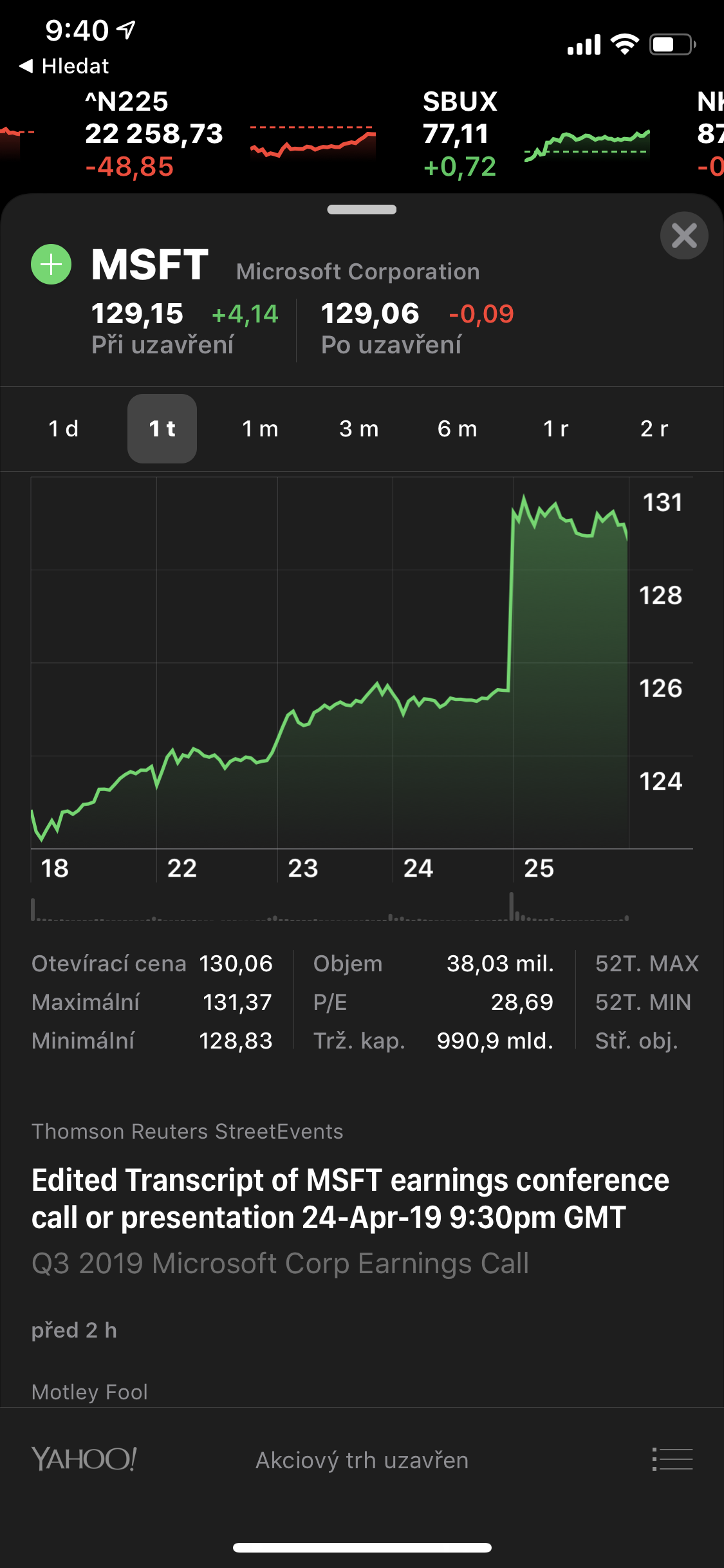 Obávám se, že Apple se po 30.4., kdy představí své výsledky za 2Q/FY19 jako MS radovat nebude…