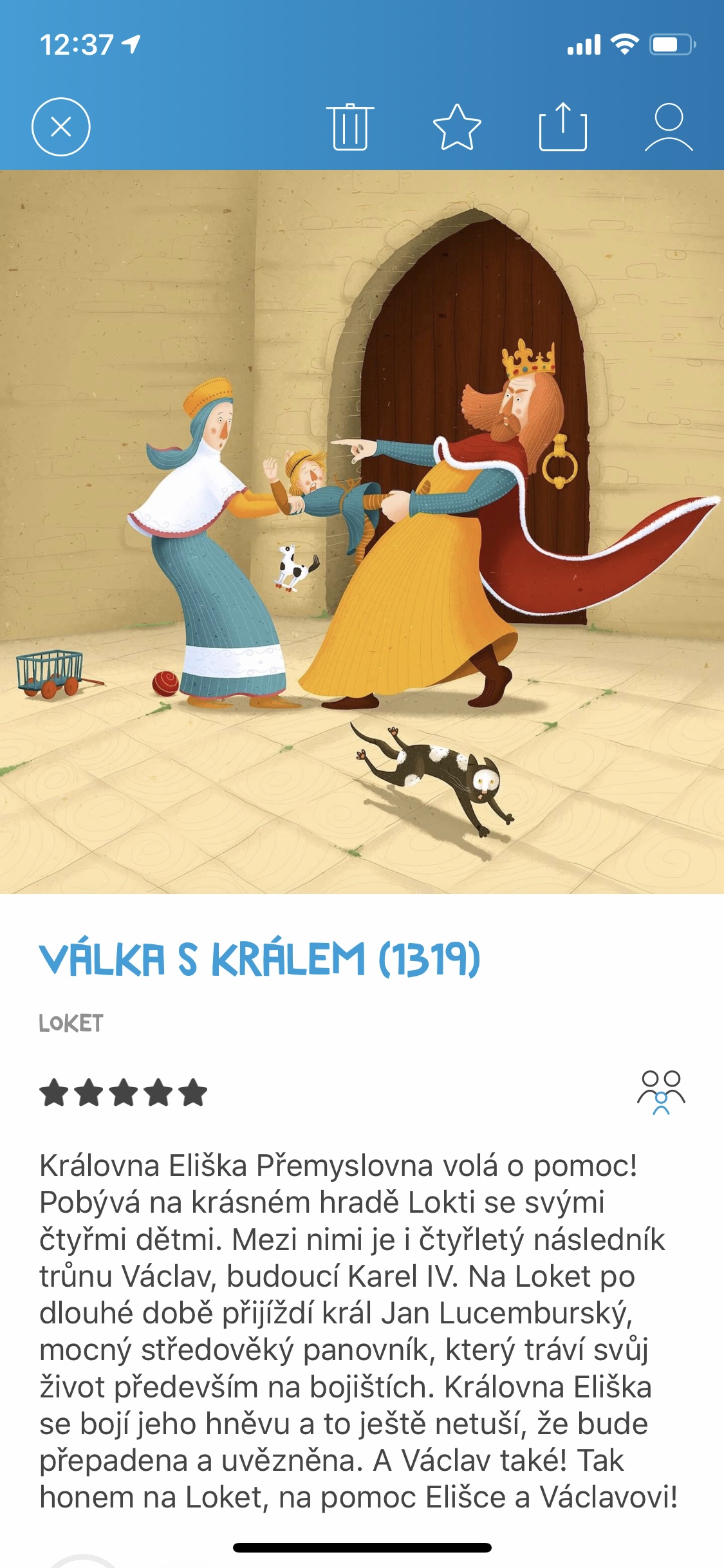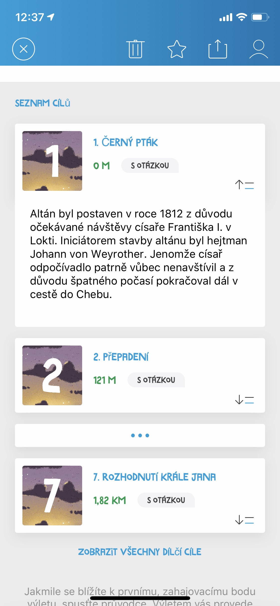 Vraťme se ale ještě chvíli k sekci Hravě. Právě s tou si totiž dali vývojáři zřejmě nejvíce práce. Jednat se má totiž o menší pátrací hry, kdy výletníci cestují v čase a cestou pomáhají určitým historickým postavám řešením jednoduchých úkolů. Časem však necestujete jen pro nic za nic. Hlavním cílem hry je totiž kromě pomoci historickým postavám dlouhodobě pomáhat i vašemu cestovatelskému průvodci – mimozemšťanovi To-to. Ten totiž honí padoucha Timora Temnouše, který se má snažit ovládnout naší budoucnost. Ano, jedná se sice primárně o dětskou zábavu, na druhou stranu ani dospělého cestovatele občasné plnění úkolů nudit určitě nebude. A pozor – celé hře zapůjčila svůj hlas Valérie Zawadská. Díky ní se tak dozvíte spoustu zajímavých věcí z české historie. Ale pozor, jednotlivé výlety je potřeba nejprve v aplikaci stáhnout, kvůli čemuž je nutné internetové připojení.