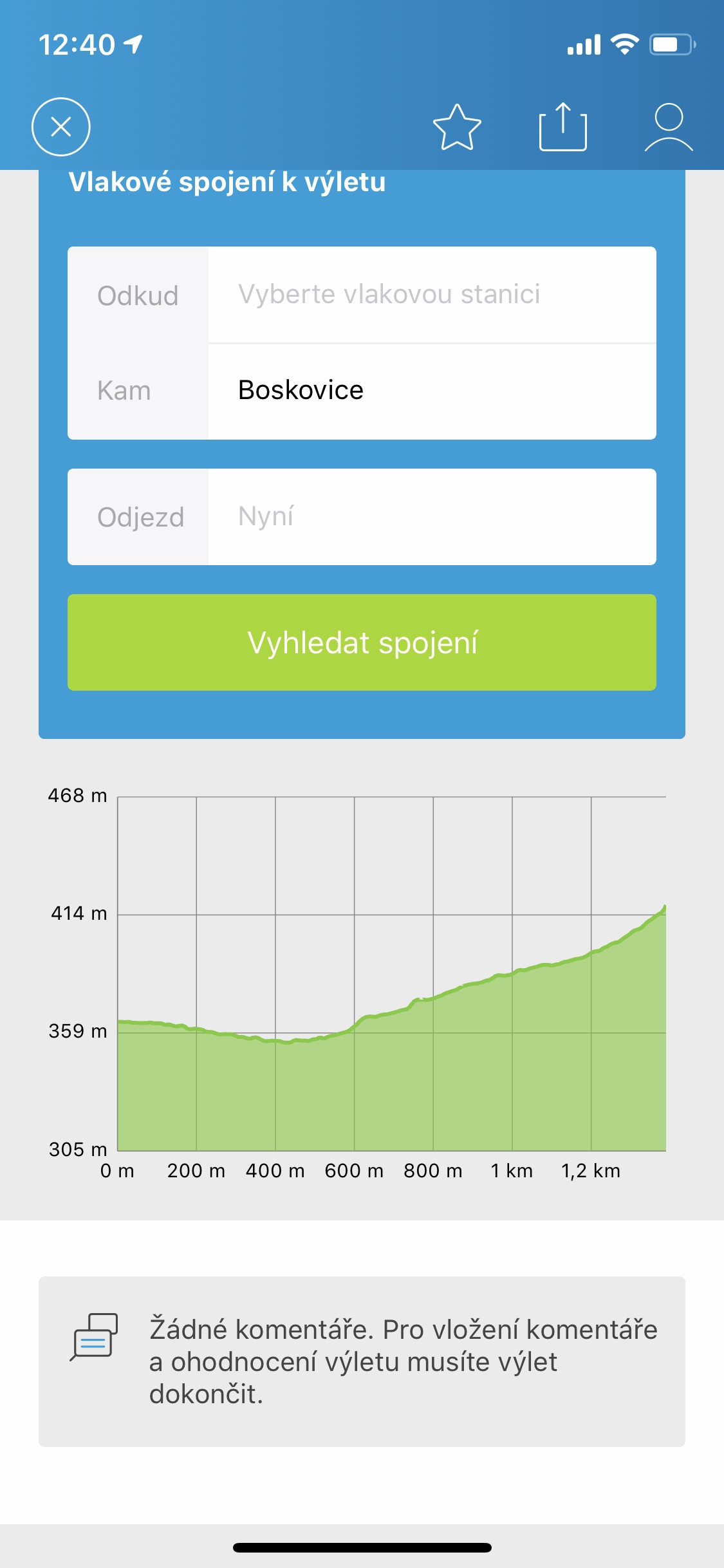Prostředí appky je dle mého příjemné, přehledné a intuitivní. K orientaci v ní budete nejvíce používat čtyři sekce v její spodní části – Hravě, S kým, Kam a Kdy. Jak už napovídá samotný název, tyto sekce vám budou nabízet výlety podle toho, kam či s kým chcete vyrazit, popřípadě vás v sekci Kdy upozorní na časově limitované události jako třeba různé výstavy či festivaly. Nabídka výletů je dle mého názoru skutečně pestrá, díky čemuž si z ní vybere snad každý. Super je i to, že po “rozkliknutí” určitého výletu vám appka nabídne spoustu detailních informací o něm od fyzické náročnosti, přes časovou až třeba po to, jak daleko je váš výletový cíl od nádraží, ke kterému vás vlak přiveze. Mimochodem, přes aplikaci lze samozřejmě vlajkové spoje na místo velmi jednoduše vyhledat a výlet tak de facto naplánovat na jednom místě.