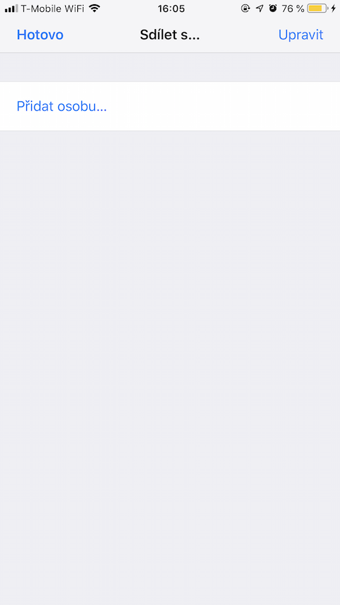 - Pro sdílení klepněte v horní části seznamu na „Upravit“ -> Sdílení, a zadejte jméno osoby, se kterou chcete seznam sdílet. Přidat můžete pochopitelně libovolný počet uživatelů.