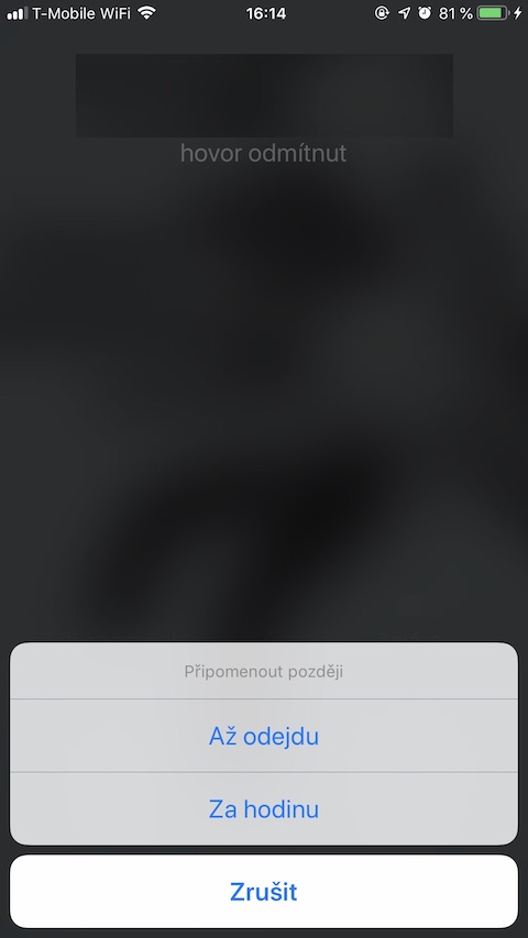 Někdo vám volá a vám s to zrovna nehodí? Na obrazovce s příchozím hovorem klepněte na „Připomenou“ a zvolte, zda chcete být na hovor znovu upozorněni za hodinu nebo po odchodu z místa, na kterém se právě nacházíte.