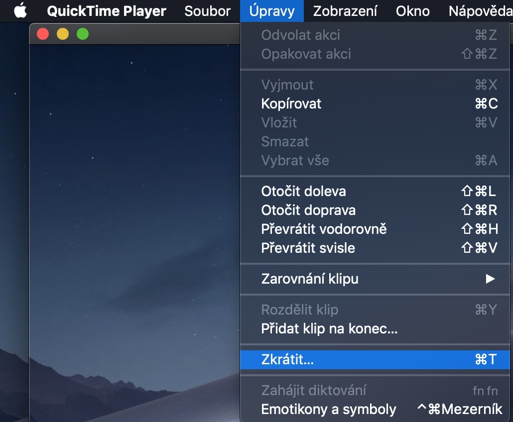 QuickTime Player můžete využít i pro další úpravy, mezi kterými se nachází například otočení nebo převrácení. Veškeré tyto možnosti naleznete v horním menu baru v kartě Úpravy. Žádná z těchto variant není naštěstí vůbec složitá a každý si s nimi hravě poradí.