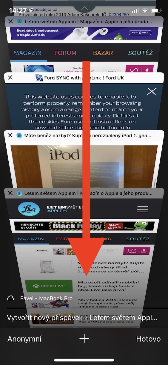 Postupem času se na vašem iPhonu či iPadu seskupí několik otevřených záložek. V den „očisty“, kdy dojde k zavření všech záložek, určitě zavíráte jednu po druhé opětovným klikáním na ikonu křížku. Věděli jste však, že existuje jednoduchý trik, pomocí kterého můžete zavřít všechny záložky najednou? Je tedy jedno, jestli budete mít otevřeny dvě, anebo dva tisíce záložek – všechny je můžete rychle najednou zavřít. Pro zavření všech panelů najednou stačí podržet tlačítko pro zobrazení všech otevřených panelů v pravém dolním rohu obrazovky. Zobrazí se menu, kde můžete hned pomocí první možnosti zavřít všechny panely najednou. Popřípadě můžete v seznamu všech otevřených panelů podržet tlačítko Hotovo. Odtud můžete také ihned zavřít všechny panely.