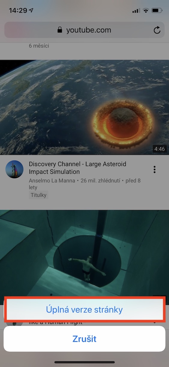 I když je to k nevíře, tak i v roce 2019 stále existují webové stránky, které nemají svůj design přizpůsobený k zobrazení na menších displejích. Některé webové stránky se sice o zobrazení mobilní verze pokoušejí, avšak ne vždy úspěšně. Někdy v mobilní verzi něco chybí, jindy zase například nefungují formuláře, apod. Naštěstí se na tohle v Applu myslelo a vývojáři do mobilní verze Safari přidali možnost, pomocí které si můžete zobrazit webové stránky v desktopové, neboli úplné verzi. Pro zobrazení stránky v úplné verzi stačí podržet prst na aktualizační ikoně na pravé straně od názvu webové stránky. Poté se ve spodní části displeje objeví jediná možnost Úplná verze stránky, na kterou stačí kliknout.