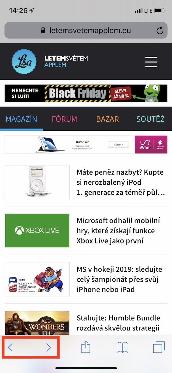 Pokud jste se na jedné záložce pohybovali delší dobu v rámci několika stránek, tak mezi nimi můžete jednoduše přeskakovat. Tehdy, když se snažíte dostat z jedné stránky zpět na tu druhou, tak mačkáte tlačítko zpět v podobě šipky v levém dolním rohu obrazovky. Zkusili jste však někdy ikonu šipky podržet? Po podržení se vám zobrazí seznam všech stránek, které jste v rámci jedné záložky již navštívili. Pokud se navíc posunete vzad, tak si stejný seznam můžete vyvolat i pro stránky navštívené dříve. Stačí podržet druhou šipku, pomocí které se dostáváte vpřed mezi stránkami.