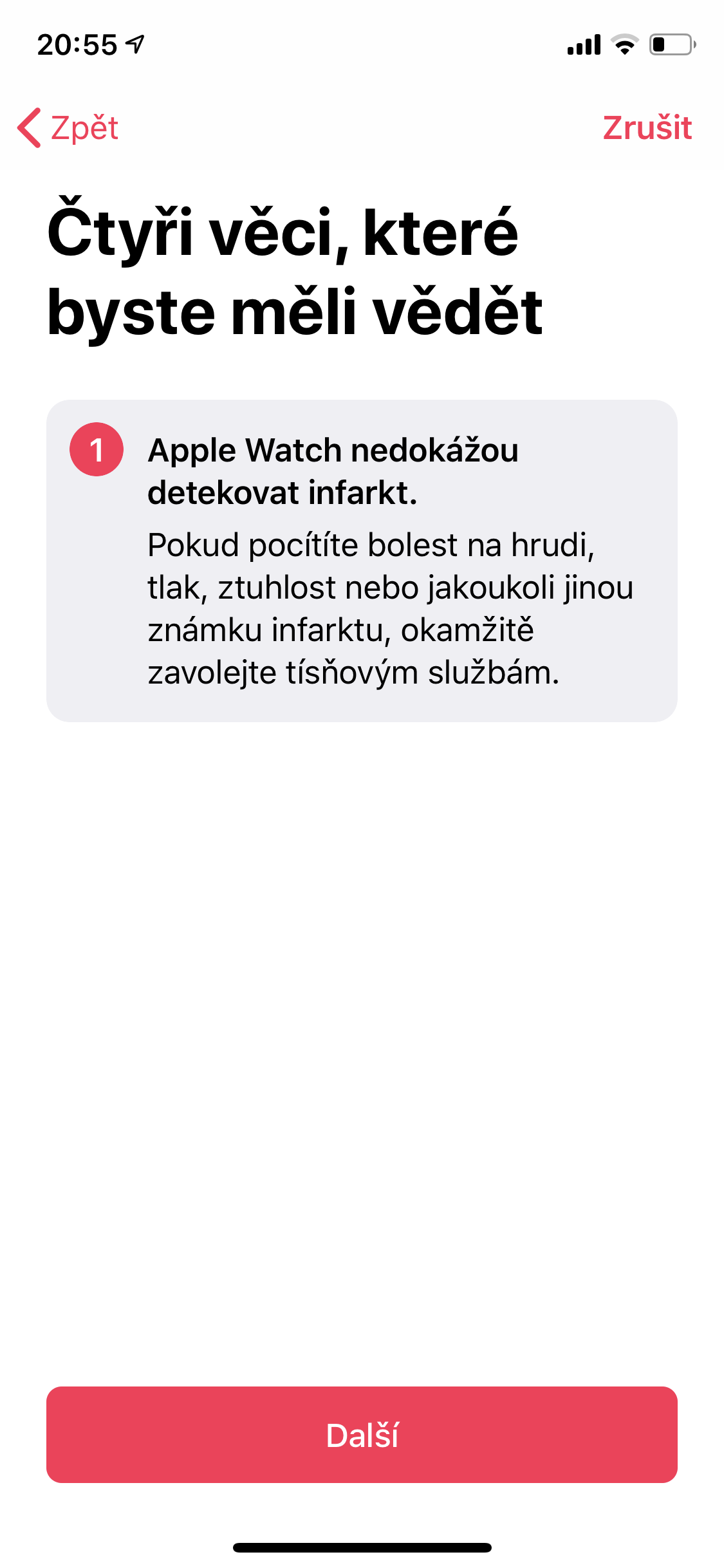 Pokud vás hodinky po aktivaci této možnosti upozorní na to, že nepravidelným sredčním rytmem trpíte, a vy jej doposud nemáte diagnostikovaný lékařem, měli byste jej v brzké době navštívit. Vaše srdce totiž není s největší pravděpodobností zcela v pořádku, což byste rozhodně neměli podcenit. Ale pozor. Samotný Apple na svém webu upozorňuje, že hodinky nedokážou rozpoznat infarkt a ani nehlídají nepřetržitě fibrilaci síní. Rozhodně se tedy nedá říci, že 100% nahradí lékaře. Berte je tedy samozřejmě spíše s rezervou jako jakéhosi ukazatele stavu, nežli pravého doktora. Oznámení na nepravidelný srdeční rytmus navíc není podle webu Applu určen pro lidi mladší než 22 let.
