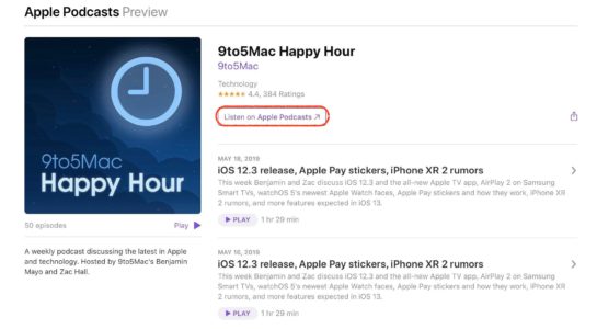 Pokud jste zvyklí Podcasty prohlížet přes webovou stránku Applu, mohli jste se na ní ještě donedávna setkat s možností “Poslouchejte v iTunes”, po jejíž volbě se automaticky zaktivovala aplikace iTunes na Macu a začala podcast přehrávat. A právě tato možnost se nyní dočkala přejmenování na Poslouchejte v Apple Podcastech – tedy v nové aplikaci, která dorazí právě v macOS 10.15. V tuto chvíli sice tato volba zaktivuje opět “jen” iTunes, jakmile však samostatná aplikace Podcasty na Macy dorazí, Apple webové rozhraní přenastaví a umožní přes něj spouštět přímo ji.