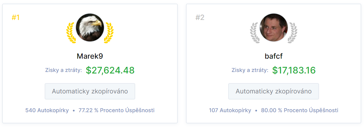 Automaticky tedy pomocí funkce autokopírování napodobujete všechny jejich obchody na svém účtu. Vy si jen nastavíte, jak velké či malé procento z vašich peněz chcete kopírováním těch nejúspěšnějších investovat.