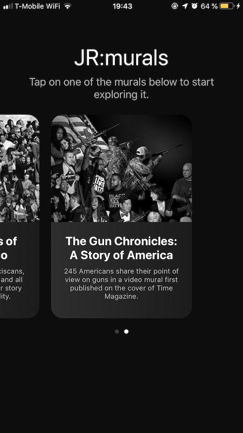 Video se může na první pohled zdát jako lehce chaotický shluk lidí, zcela nových rozměrů ale nabývá v kombinaci s příslušnou iOS aplikací. Ta nese název JR:murals a za pomoci fotoaparátu iPhonu na principu rozšířené reality dokáže postupně obrazem a psaným i mluveným slovem převyprávět příběh každého, kdo je na videu zachycen. Aplikace ale stejným způsobem funguje i ve spolupráci s monografií JR. Tim Cook označil ve svém tweetu umělcovo dílo za pohyblivý mistrovský kousek, který je bezpodmínečně nutné vidět. Nástěnné video je momentálně k vidění v sanfranciském muzeu výtvarného umění.