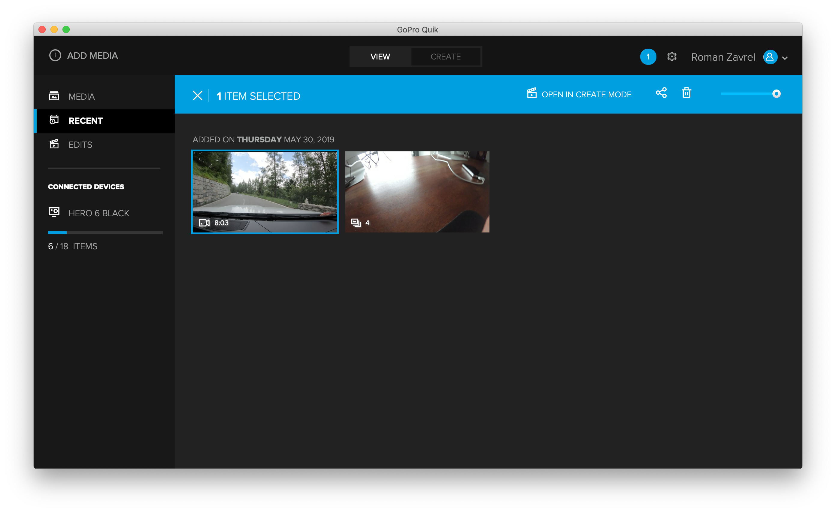 Aplikace samotná je zcela zdarma, abyste ji však mohli využívat, musíte být majitelem některé z GoPro kamer, jiné kamery totiž nejsou podporované, a i když se vám podaří dostat do editoru video z cizí kamery, data z ní do videa bohužel nenahrajete. Já osobně aplikaci používám s kamerou GoPro Hero 6 black a v následujícím článku také pracuji s daty a záznamem právě z této kamery. Abyste mohli získat data z kamery, potřebujete minimálně GoPro Hero 5 nebo novější a mít zapnutý GPS záznam na kameře. Při spuštění aplikace se dostanete do knihovny, ve které najdete svá videa, ať již přímo na připojené kameře nebo nahraná v počítači, případně na cloudu, pokud používáte rozšířené členství v programu GoPro Plus.