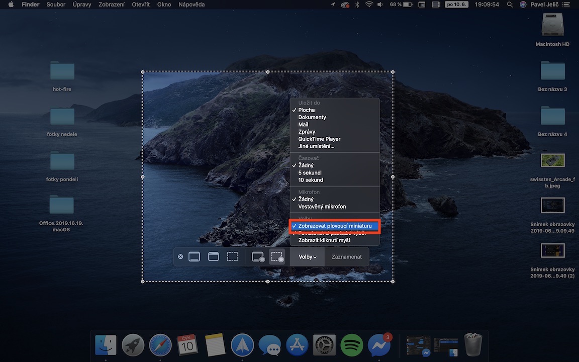 Na vašem macOS zařízení, tzn. na Macu anebo MacBooku, stiskněte klávesovou zkratku Command + Shift + 5. Zobrazí se rozhraní, ve kterém si můžete jednoduše spustit například nahrávání obrazovky, anebo si pomocí něj můžete zvolit, kterou část obrazovky chcete vyfotit. V tomto případě však obrazovku zaznamenávat nebudeme. Naopak po stisknutí klávesové zkratky rozklikneme v menu možnost Volby. Objeví se další rozevírací menu, ve kterém ve spodní části deaktivujeme funkci s názvem Zobrazovat plovoucí miniaturu. Poté už jen stačí stisknout klávesu Escape a opustit tak režim pro zaznamenání obrazovky. Nyní už máte jistotu, že se při vytvoření snímku obrazovky nikdy v pravém dolním rohu miniatura neobjeví. Samozřejmě, pokud byste si to rozmysleli, tak můžete funkci stejným postupem znovu aktivovat.