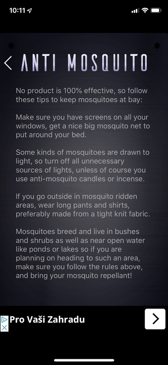 Osobně jsem nečekal, že by aplikace v telefonu dokázala jednoduše odpuzovat komáry. K mému překvapení tomu tak doopravdy je. Pokud ale chcete mít 100% jistotu, že váš žádný komár nekousne, tak byste stále měli využívat klasických repelentů a dlouhého oblečení. Zároveň byste se měli vyhnout blízkému okolí vody, například rybníků a jezer, kde se komáří líhnou. Pokud však večer sedíte na zahradě a chcete se komárů zbavit, mohu vám aplikaci Anti Mosquito jen doporučit.