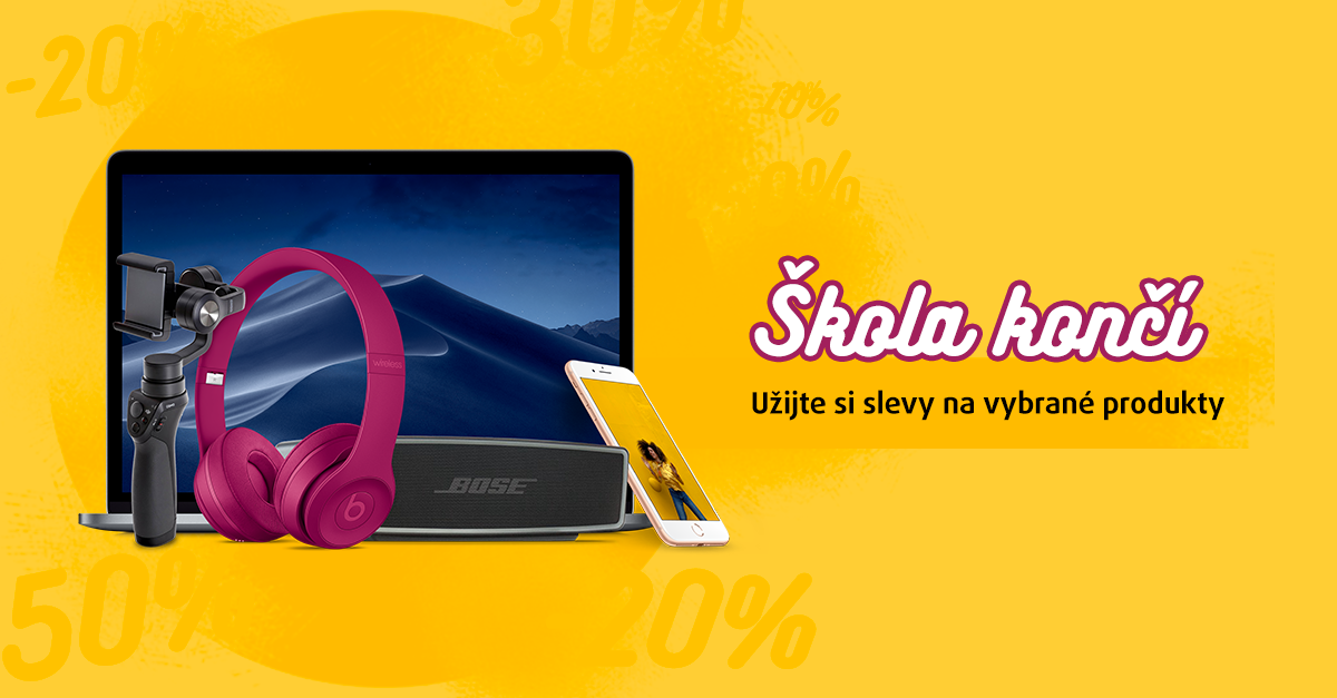 Jablíčkáře by mohla zajímat sleva na oblíbený iPad (2018), který lze o prázdninách skvěle využít místo notebooku na základní práci, či prostě jen na sledování filmů a sociálních sítí. Při jeho nákupu nyní ušetříte příjemných 10 % a vyjde vás tak na 8111 korun. Za zmínku pak stojí i legenda mezi notebooky – MacBook Air 2017. Za ten zaplatíte nyní jen 23911 korun a to díky 23% slevě. Líbit by se vám ale mohla i 15% sleva iPhonu 7, který tak díky ní vyjde na 11591 korun. Nabídka je však opravdu široká a naleznete v ní i produkty Beats, JBL, Niceboy a mnoho dalších.