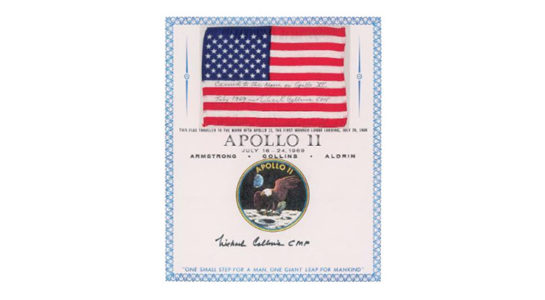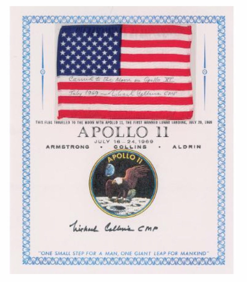 Mise Apolla 11 a prvního přistání člověka na Měsíci oslavuje 50. výročí. Při té příležitosti proběhla aukce některých předmětů spojených právě s tímto historickým okamžikem. Jedním z nich je vlajka, která byla na palubě a je podepsána Michaelem Collinsem. Ta se vydražila za více než půl milionu korun. Dalším předmětem byl fotografický 70 mm film obsahující 126 ikonických snímků přímo z Měsíce, který si výherce aukce odnesl za téměř 250.000 Kč. Nejspíše nejdražším vydraženým předmětem (zhruba 900.000 Kč) byla medaile Amstronga speciálně vyrobená právě pro tuto misi.
