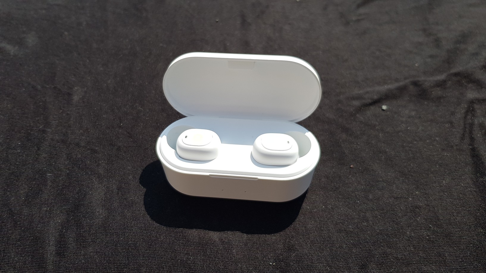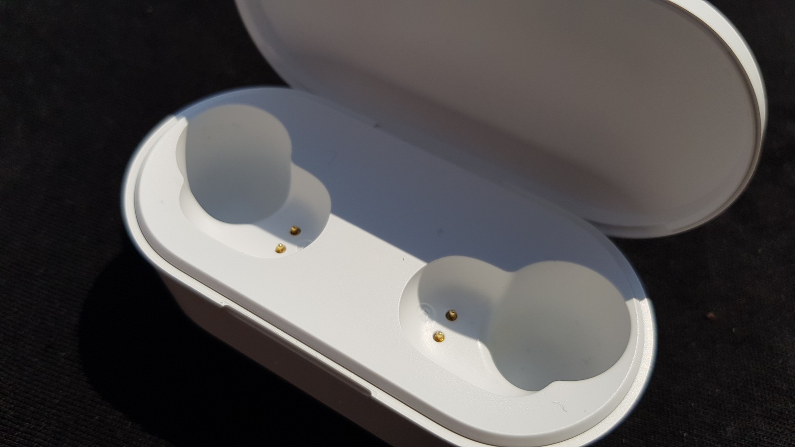 Sluchátka se nachází v plastové krabičce, která vám svou velikostí skvěle padne do kapsy. Po designové stránce neurazí ani nenadchne. Matný bílý vzhled nezanechává otisky a nepoškrábe se jako třeba krabička u AirPods. Na přední straně se nachází LED diody, které indikují stav nabití, na zadní straně pak konektor pro microUSB kabel. Zde bych ocenil především magnet, kterým sluchátka v krabičce drží. Ať se budete snažit sebevíc, sluchátka z ní prostě nevypadnou. Párkrát se mi ale stalo, že krabička při otevírání opravdu velmi nepříjemně vrzala, po několika rychlých otevřeních ale tento jev vymizel.