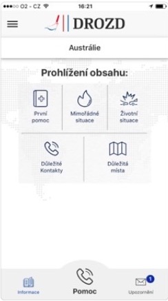 Zprvu byla k dispozici pouze webová verze DROZDa, která sloužila de facto jen k registraci uživatelů. V loňském roce však vydalo Ministerstvo zahraničních věcí aplikaci DROZD pro iOS a Android, která slouží jednak k rychlé registraci do informačního systému, ale také třeba k rychlému přístupu ke kontaktům záchranných složek v dané zemi či k na nejbližší zastupitelský úřad v jejich okolí, na který se mohou v případě problémů obrátit. Hodit se mohou ú jednoduché návody pro první pomoc či rady, jak se v určitých krizových situacích chovat. Appka vám dokonce poradí i v případě ztráty dokladů, odcizení peněz či podobných peripetií.