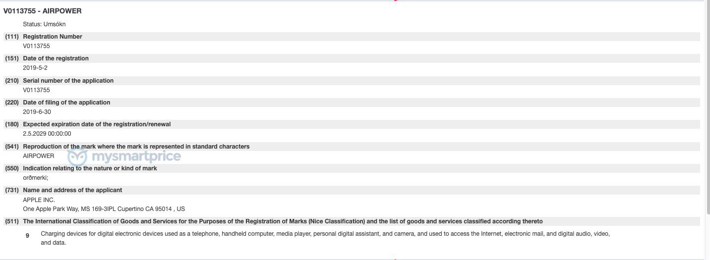 Světová organizace duševního vlastnictví (World Intellectual Property Organization, WIPO), která se stará o zprostředkovávání autorských práv a ostatních patentů, zprostředkovala také patent pro AirPower. 30. března 2019 však došlo k uzavření tohoto patentu, a to z toho důvodu, že při testování produktu došlo k nekontrolovatelnému přehřívání. Apple tedy uvedl, že nedošlo ke splnění standardů a nabíjecí rohožka nemohla být uvedena na trh. Celý projekt, včetně ochranné známky tak ukončil. Teprve před pár dny, konkrétně 30. června 2019, však došlo k znovuobnovení ochranné známky AirPoweru – a kým jiným, než samotným Applem.
