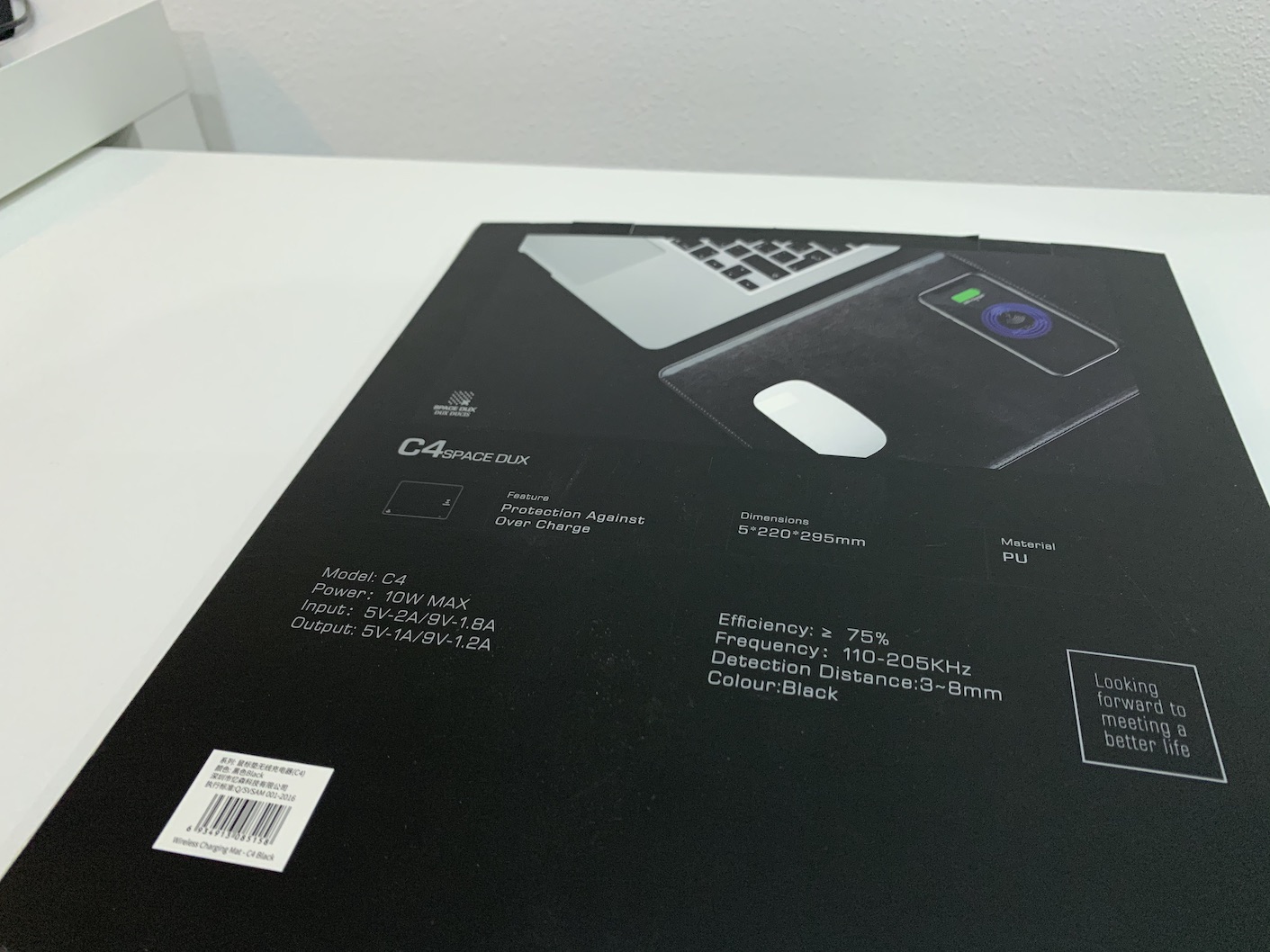 Tuto recenzi bych nejraději opět začal technickými specifikacemi, tedy čísly a různými údaji, které byste před zakoupením měli znát. Jak už jste si mohli v úvodu přečíst, tak podložka DuxDucis C4 není jen tak ledajakou podložkou pod myš. Jedná se o duální produkt, který můžete využít jednak jako podložku pod myš, a jednak jako bezdrátovou nabíječku pro váš iPhone. Bezdrátová nabíječka disponuje standardem Qi a zároveň využívá ochrany proti přepětí. Maximální výkon nabíječky je 10 W, což je maximální možný výkon, které jsou iPhone s možností bezdrátového nabíjení schopny pojmout. To znamená, že nabíječkou zabudovanou v této podložce můžete bezdrátově iPhone nabíjet plnou rychlostí. O napájení se stará microUSB port se vstupem 5V/2A a výstupem 5V/1A. Celková velikost podložky je 220×295 milimetrů tloušťka podložky je poté 5 milimetrů.
