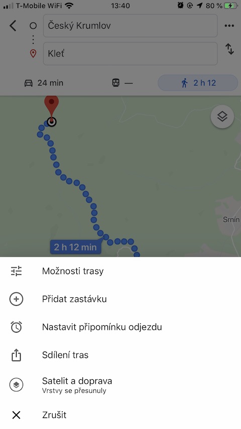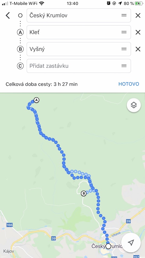 Jsme zvyklí používat Google Maps k navigaci z bodu A do bodu B. Na své trase ale můžete přidat libovolný počet dalších bodů, u kterých se chcete zastavit. Naplánujte trasu, klepněte na tři tečky v pravém horním rohu a vyberte možnost „Přidat zastávku“.