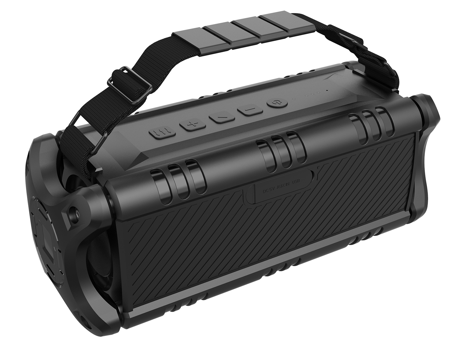 Pevné profilované tělo je odolné stříkající vodě nebo dešti. Reproduktor splňuje normy standardu IPX5 a je chráněn před nepříznivými podmínkami, kterým může být vystaven při každodenním používání ať už doma nebo kdekoli venku. Masivní kovová mřížka ochrání reproduktory před mechanickým poškozením. Praktický popruh umožní snadnou přepravu na rameni nebo přichycení na batoh.