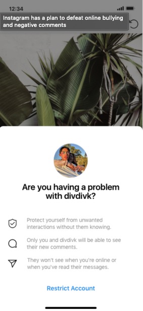 Instagram představil nové funkce, se kterými chce v rámci své sociální sítě bojovat proti kyberšikaně. Ta se nejčastěji objevuje v komentářích. Od nové aktualizace se bude umělá inteligence starat o rozpoznání komentářů, které mohou obsahovat prvky kyberšikany. Zároveň Instagram testuje další funkci, pomocí které budou uživatelé schopni pomocí omezení určit, komu se zobrazí komentáře. O obou těchto funkcích informoval samotný výkonný ředitel Instagramu, Adam Mosseri, a to prostřednictvím blogového příspěvku.