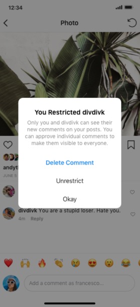 „Od mladších uživatelů Instagramu, kteří jsou terčem šikany, jsme zjistili, že si šikanující osoby jednoduše zablokovat nemohou. Podle nich by to totiž ještě zhoršilo situaci, především tedy pokud se s těmito šikanujícími osobami musí střetávat i osobně – například ve škole,“ dodal Mosseri.