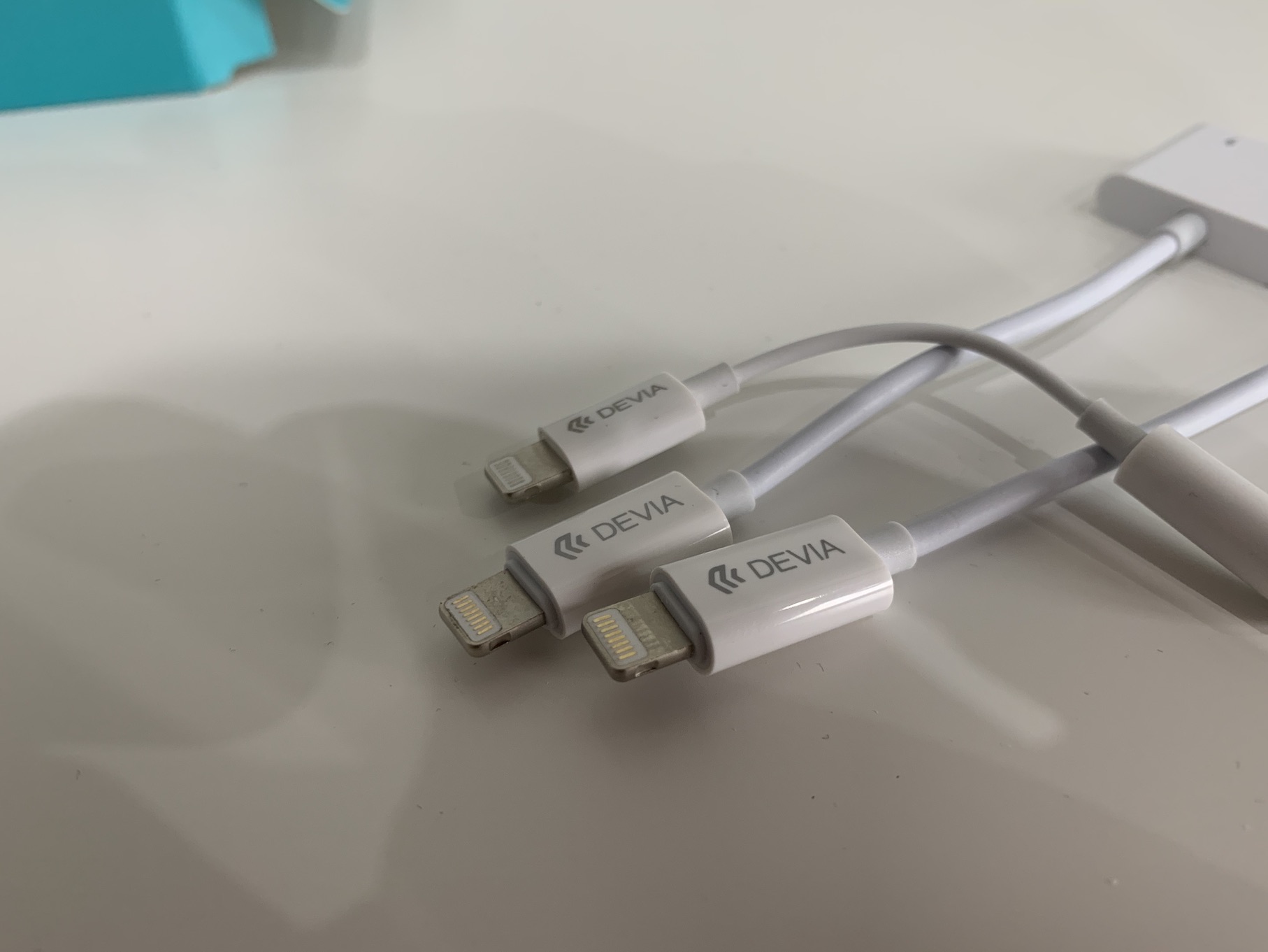 Tento adaptér je mezi jablečnými uživateli asi nejoblíbenější. Pokud totiž vlastníte sluchátka se 3,5mm konektorem a nechcete se jich vzdát a zároveň chcete mít jistotu, že v případě nouze můžete při poslouchání hudby i nabíjet váš iPhone, tak je tato rozdvojka tou nejlepší volbou. Jednoduše ji zapojíte do Lightning konektoru a rázem získáte dva porty – jeden Lightning pro nabíjení a druhý v podobě 3,5mm jacku, do kterého můžete zapojit vaše drátová sluchátka. Tento adaptér je dle očekávání o něco větší, než klasický 3,5mm adaptér, a zároveň také delší. Opět na něm naleznete jen branding Devia. Zpracování je perfektní a nebýt zmíněného brandingu, tak byste jen těžko hádali, zdali se jedná o originální adaptér od Applu (či Belkinu), anebo nikoliv.