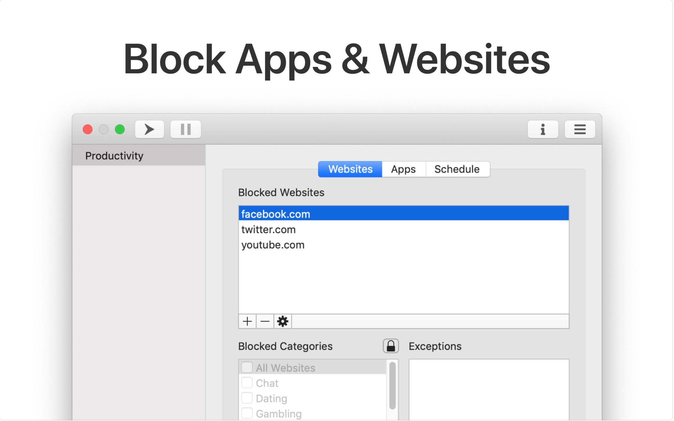 Není jednoduché se soustředit na práci, obzvlášť při dnešním náloži rozptýlení, které čeká na každém kroku. Aplikace 1Focus vám pomůže eliminovat tyto neduhy. Jednoduše si nastavíte, jaké webové stránky a aplikace chcete během práce zablokovat a už se vám nestane, že zabrousíte třeba na FB.