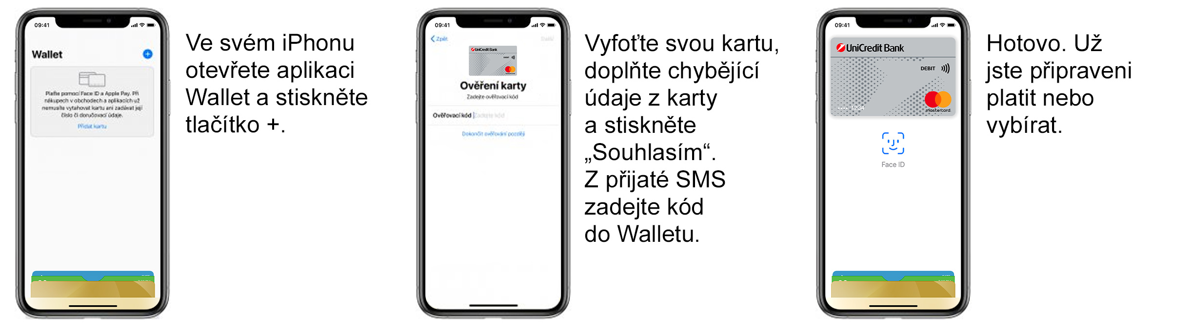 Hledání platebních karet po kapsách nebo v peněžence odzvonilo. UniCredit Bank pro své klienty spouští službu Apple Pay. Debetní karty Mastercard UniCredit Bank si tak můžete nahrát do digitální peněženky (Wallet) některého z chytrých zařízení Apple a díky NFC technologii jimi pohodlně a bezpečně platit. Ostatně 40 % Čechů potvrdilo, že chce, nebo již využívá služeb Apple Pay nebo jinou mobilní platební a digitální peněženku.