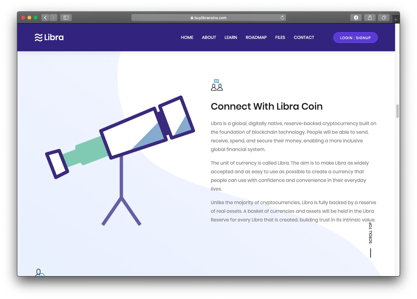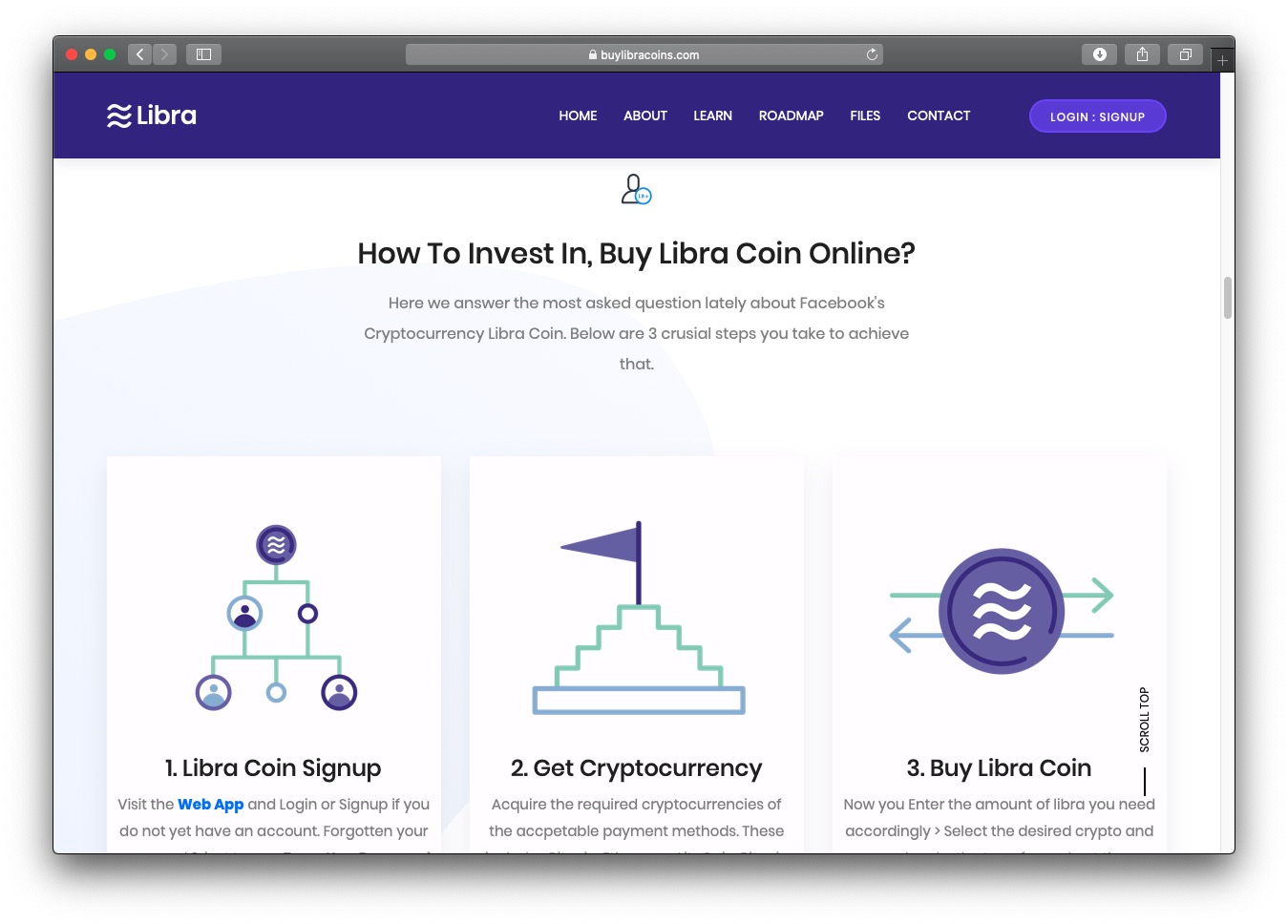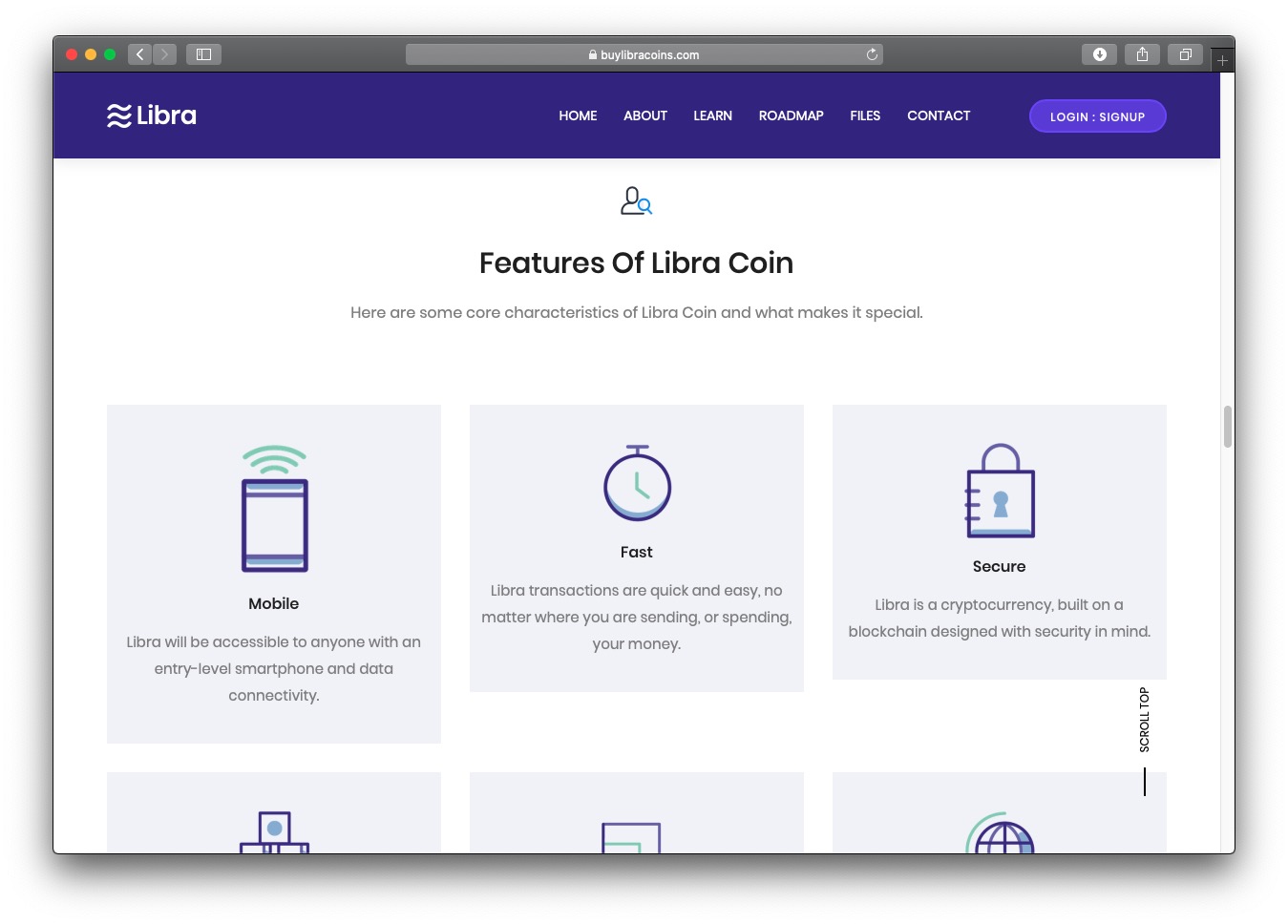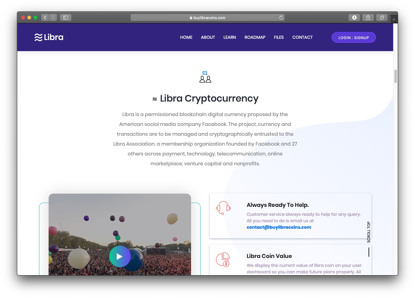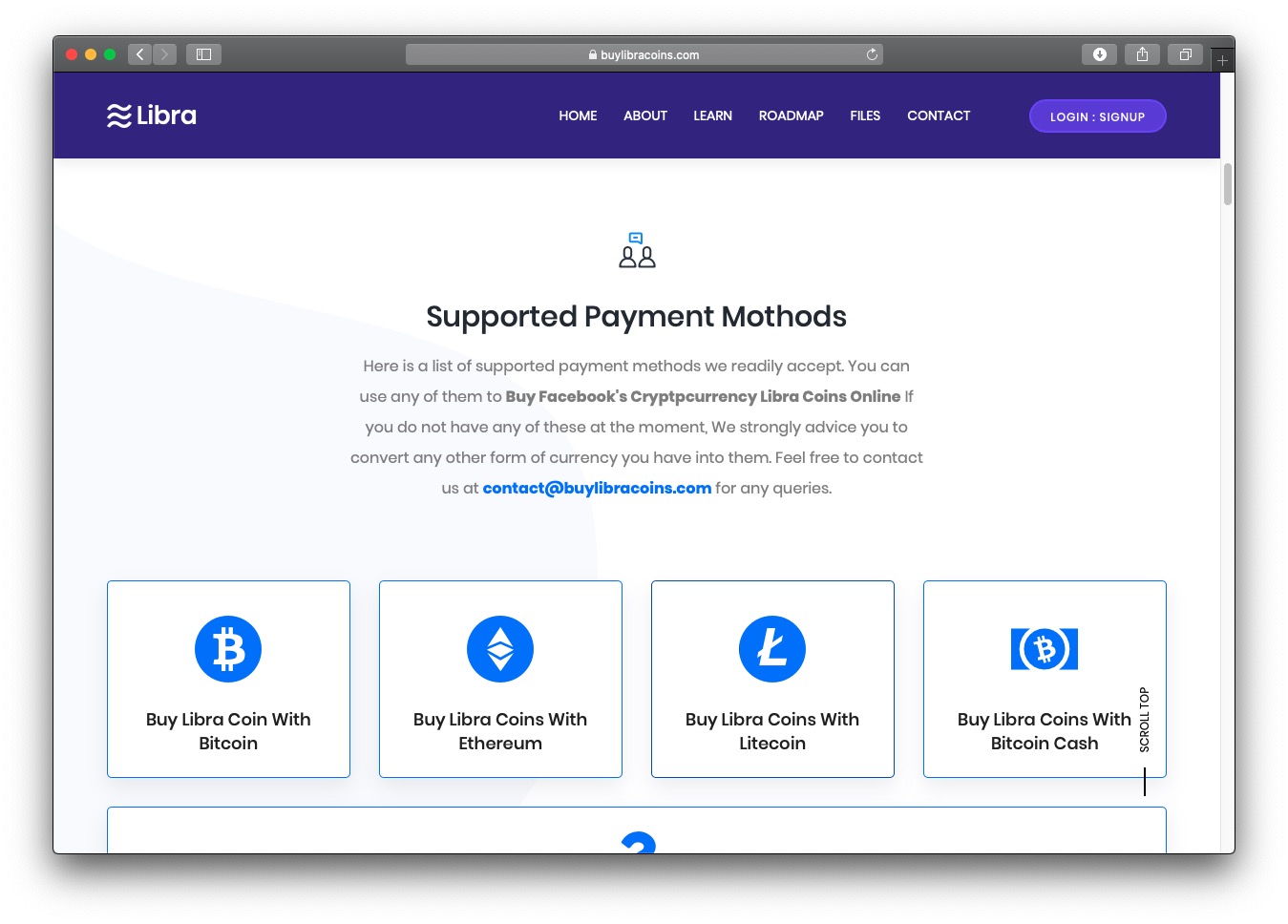 Uživatelé, kteří na Facebooku prodávají Libru, mají na profilové fotografii nastavené logo Facebooku, popřípadě i klidně hlavu Marka Zuckerberga – zkrátka a jednoduše splňují všechny náležitosti, aby vypadali věrohodně. Většina těchto podvodných stránek odkazuje na webové stránky BuyLibraCoins.com, které se zdají svým zpracováním a designem jako pravé. Podvodné účty, příspěvky a videa se objevily také na Twitteru, či na YouTube. Facebook už mnoho podvodných stránek odstranil, avšak každopádně není v jeho silách, aby ihned odstranil naprosto všechny. Pokud vám tedy kdekoliv na internetu bude někdo nabízet kryptoměnu Libra s výhodným kurzem, tak okamžitě ruce pryč. Libra ještě není schválená a pokud vůbec bude, tak se jejího spuštění dočkáme až někdy v roce 2020.