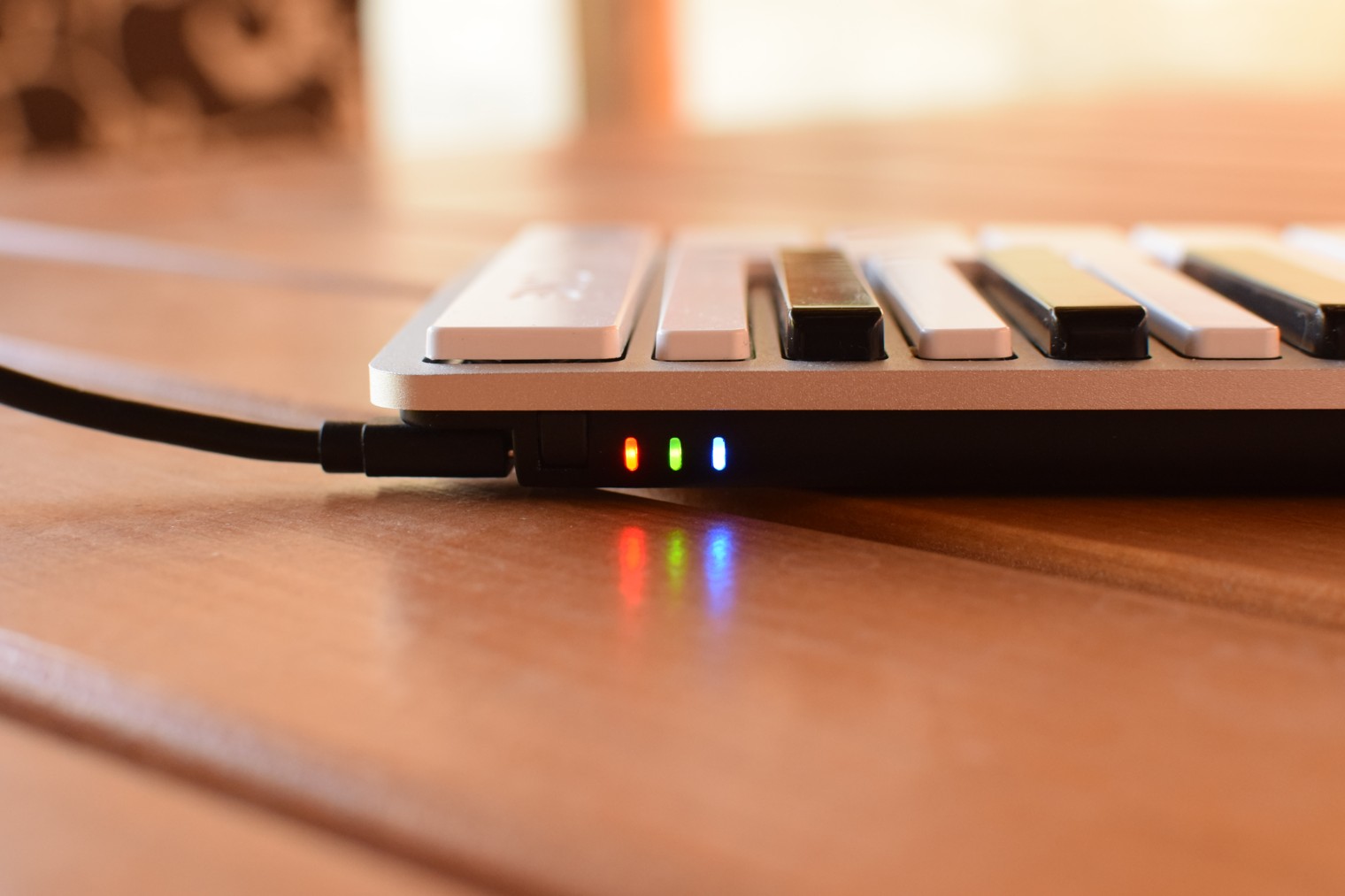Naprosto parádní je na Xkey Air to, že jdou s počítačem, telefonem či tabletem propojit bezdrátově pomocí Bluetooth. Disponují totiž konkrétně verzí 4.0, která se může pochlubit spolehlivým propojením a slušnou energetickou šetrností. I díky tomu tak klávesy vydrží hrát na jedno nabití více než 10 hodin. Pokud by vám nestačilo ani to, lze je pomocí microUSB – USB-A připojit k počítači či elektrické síti a hrát tak de facto do nekonečna. Potěší ale i to, že po chvilce nečinnosti se klávesy automaticky vypnou a tedy i šetří baterii. Z nuly na 100 % jsem je pak byl schopen nabít zhruba za 3 hodiny. O stavu baterie vás budou informovat diody na zadní straně klaviatury, podle kterých poznáte i to, zda jsou již spárovány s daným zařízením či nikoliv. Bohužel, přesný stav baterie z nich zcela dokonale nevyčtete, jelikož fungují ve stylu blikám – nejsem plně nabitá, svítím – jsem plně nabitá. Na druhou stranu, vzhledem k snadné propojitelnosti a dodání “šťávy” z elektrické sítě či počítače to není nic, z čeho by člověk kolaboval.