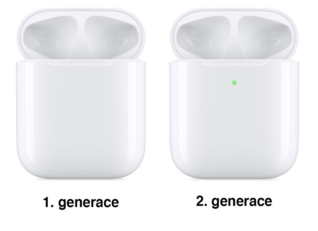 Pouzdro 1. generace a pouzdro 2. generace neexistuje je zavádějící označení. Existuje pouze pouzdro s drátovým (původní) nabíjením a pak pouzdro s bezdrátovým nabíjením. No a AirPods druhé generace jsou k dispozici s oběma pouzdry. To je vše.