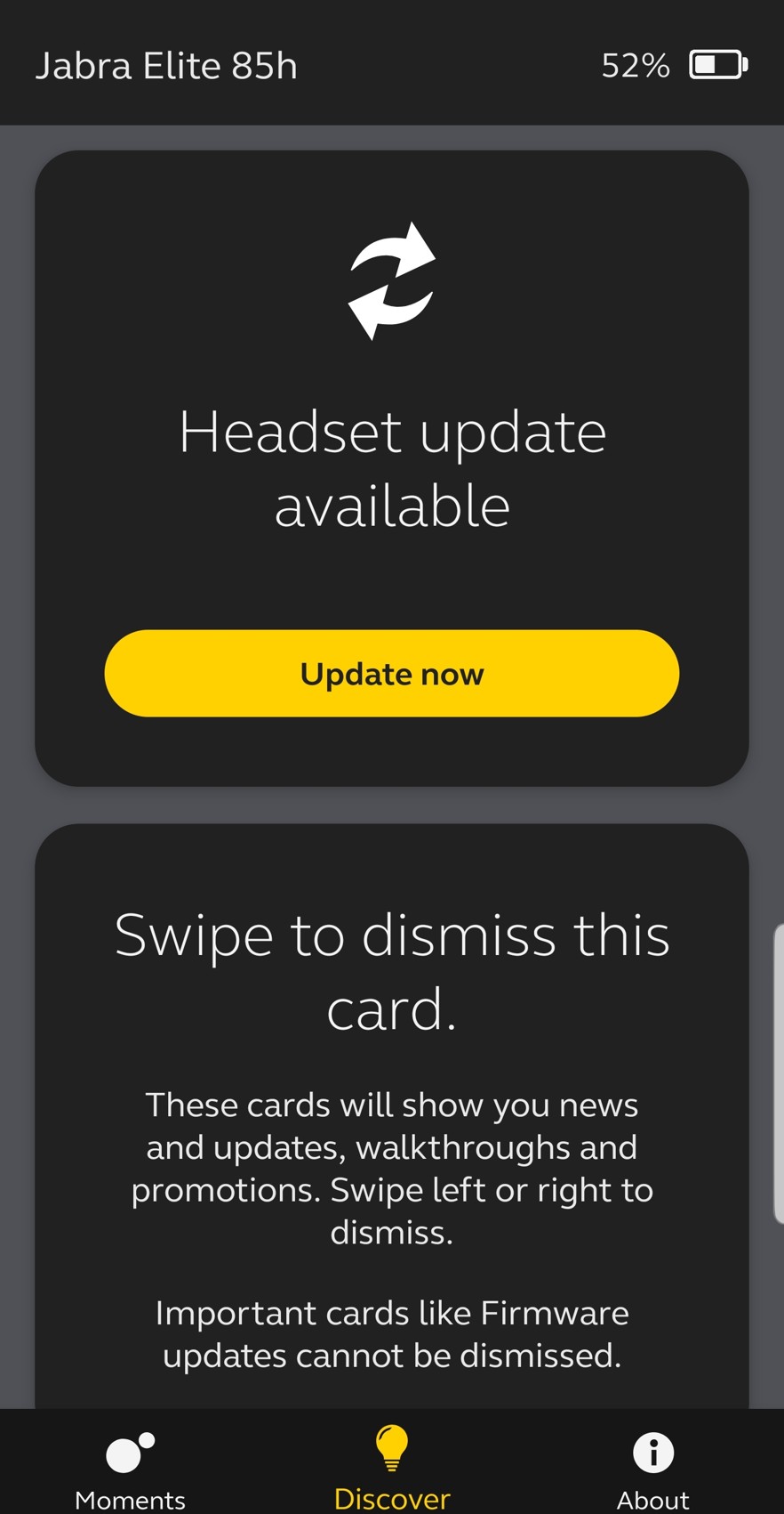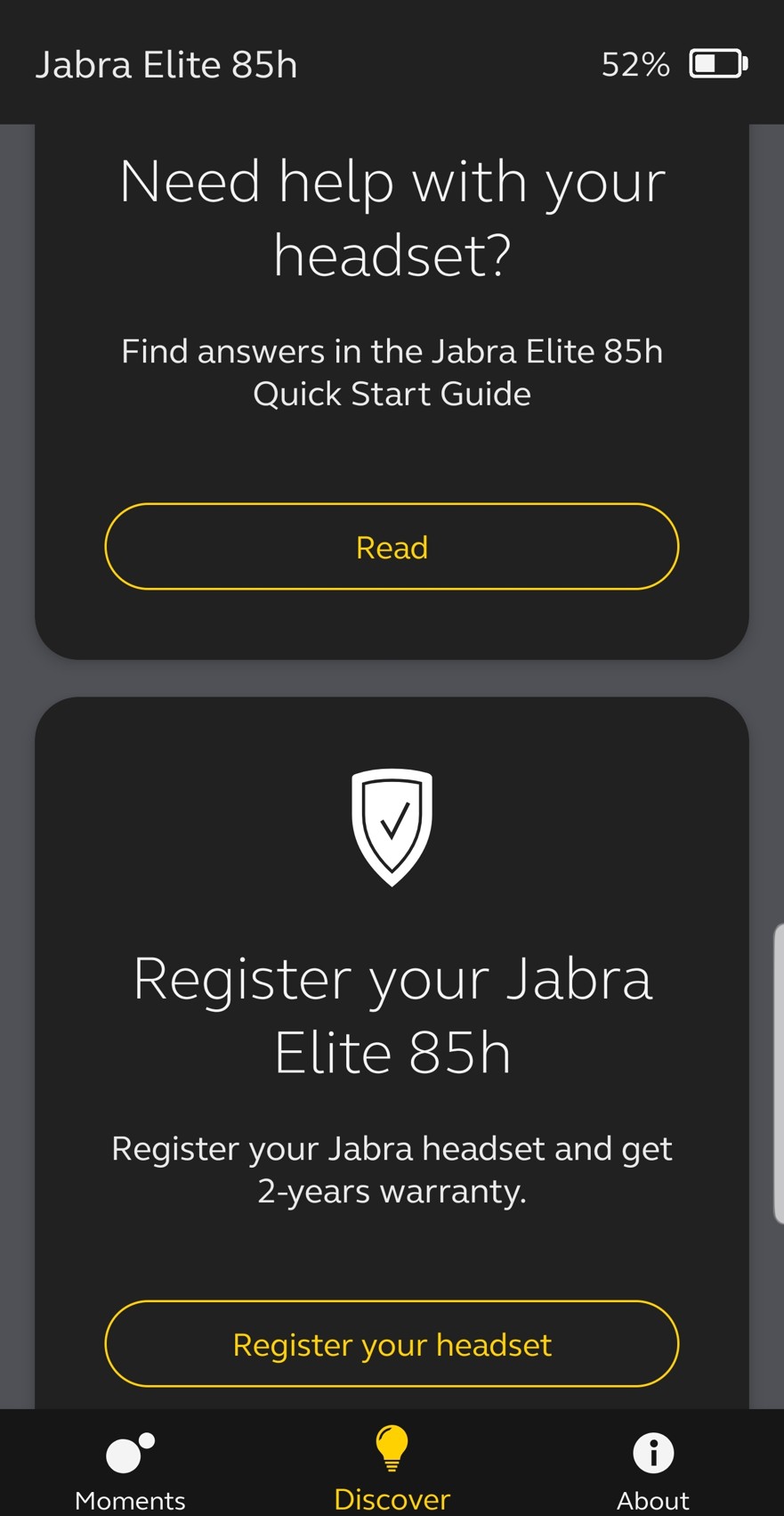 Důkladné projití aplikace je pro perfektní využití sluchátek takřka nezbytné. Kromě již zmíněného zde je také funkce Find My Jabra, kdy aplikace detekuje polohu posledního připojení sluchátek. Přes aplikaci probíhá i aktualizace jejich firmwaru nebo zde máte přehledné grafické znázorněno, kde se všechna tlačítka na sluchátkách nacházejí, jak je používat a k čemu slouží. Jak jsem již řekl, s aplikací je třeba se důkladně seznámit. Někomu může vadit absence české lokalizace, ovšem všechny prvky si velmi brzy osvojíte tak jako tak.