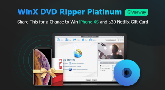 Skvělý nástroj, který vám s tím pomůže se zálohou DVD je WinX DVD Ripper Platinum. Momentálně vývojáři nabízejí každému licenci zdarma na této stránce. Jako bonus k tomu můžete vyhrát parádní iPhone XS nebo dárkovou kartu na Netflix v hodnotě 30 dolarů. Pokud chcete získat tento DVD ripper pro Mac bez dalších poplatku, zamiřte na tuto stánku.
