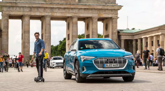 Audi představilo Etron koloběžku, která je vlastně kombinací koloběžky a skateboardu. Zařízení bude jezdit až 20 km/h, dojezd na jedno nabití společnost slibuje 20 km a hmotnost se bude pohybovat okolo 12 kilogramů. Na desce má v tomto případě člověk stát bokem a ovládat stroj jednou rukou skrze rukojeť. Druhá ruka slouží k ukazování směru jízdy svému okolí. Audi plánuje tento stroj uvést do prodeje v roce 2020 za cenu okolo 2240 dolarů (tedy zhruba 51 500 korun). Uvidíme, zda za tuto cenu nabídne Audi o něco více než konkurence s klasickými a několikanásobně levnějšími elektrickými koloběžkami.