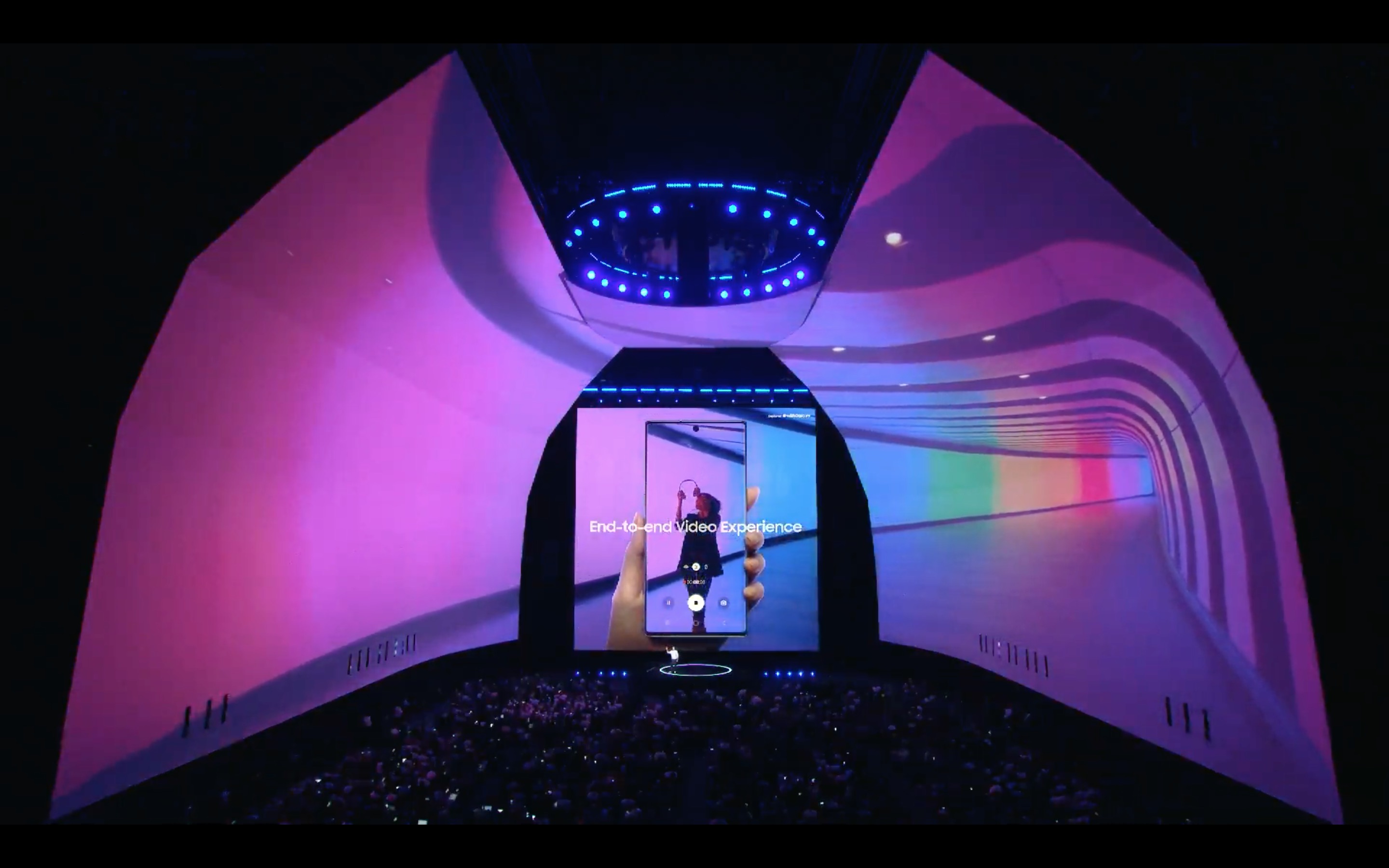 Nejprve si pojďme přiblížit Galaxy Note 10. Ten bude v porovnání s předešlou generací – tedy Galaxy Note 10 – o poznání menší. Jeho tělo se smrskne konkrétně o centimetr na délku a půl centimetru na šířku. Díky výraznému zúžení rámečků kolem displeje se však jeho úhlopříčka oproti loňskému modelu téměř nezmenší, jelikož padne jen na 6,3” oproti 6,4”. V displeji nenajdeme žádný výřez či výrazný průstřel, ale jen relativně malý otvor umístěný těsně pod střed horního rámečku, ve kterém se ukrývá objektiv předního fotoaparátu.