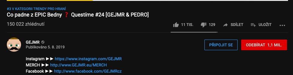 Poměrně zajímavou novinkou je i Superchat, který by se dal označit za jakousi light verzi členství na kanálech. Ten funguje na bázi kupování zpráv v chatu, které jsou následně zvýrazněny a připnuty na začátek chatovacího vlákna a youtuber na ně tak může v živém vysílání lépe reagovat, jelikož mu je hned jasné, že se jedná o příznivce, který je za jeho obsah ochoten zaplatit.