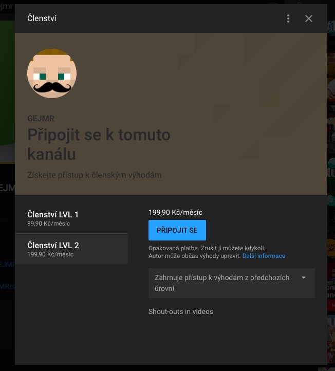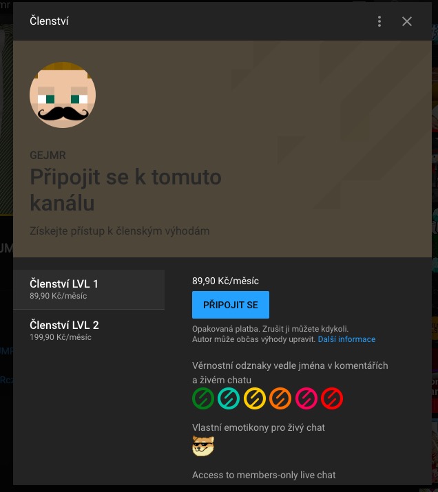 Skalní fanoušci YouTube a tvůrců na něm, můžete začít slavit. Do Česka totiž dorazilo placené členství na kanálech, které otevírá zcela nové možnosti jak pro vás, tak i pro videotvůrce. Ti budou nyní schopni přes své kanály vydělávat snadněji než kdykoliv předtím, vy si pak díky této novince s nimi budete moci užít daleko více zábavy.