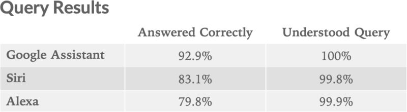 Výzkumná společnost Loup Ventures, jež experiment vykonávala, si vzala na paškál tři nejoblíbenější hlasové asistenty – Google Assistant, Siri a Alexu. Co se správně zodpovězených dotazů týče, vedla si Siri poměrně dobře a se svými 83.1% dokonce porazila o více než 3 procentní body Alexu. Přesto na Google obě společnosti ztrácely, a to rovnou o deset procent. Gene Munster, který se na výzkumu podílel, položil každému asistentovi 800 rozmanitých otázek a následně hodnotil to, jak dobře danému dotazu software rozuměl, a jak na něj zareagoval. Co se porozumění týče, dosáhl Google Assistant neuvěřitelných 100%, zatímco konkurence nepatrně ztrácela o zhruba 0.2%. Od loňského roku však došlo ve všech třech případech k obrovskému zlepšení. Siri v červenci 2018 dosahovala 79% správně zodpovězených otázek, Alexa se pohybovala na pouhých 61% a asistent od Googlu se mohl pochlubit 83%.
