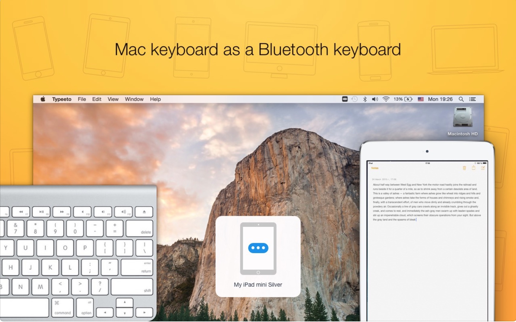 Jsme obklopeni všemožnými zařízeními, které však nedisponují klávesnicí. Tenhle problém řeší Typeeto. Ta se snaží udělat z vašeho MacBooku bezdrátovou klávesnici. Nezáleží na tom, jestli jde o iPad, PlayStation či jiné zařízení.