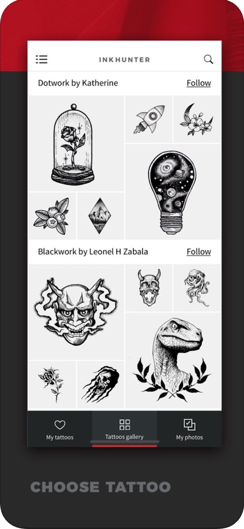 Vyzkoušet si tetování nanečisto? Pro aplikaci Inkhunter žádný problém. Díky rozšířené realitě se můžete v aplikaci Inkhunter potetovat od hlavy až k patě a vyzkoušet si, jak by vypadal znak nekonečna na vašem zápěstí, nápis nad obočím, nebo třeba stará dobrá lodní kotva na levém rameni. Výsledné virtuální tetování můžete také sdílet na sociálních sítích.