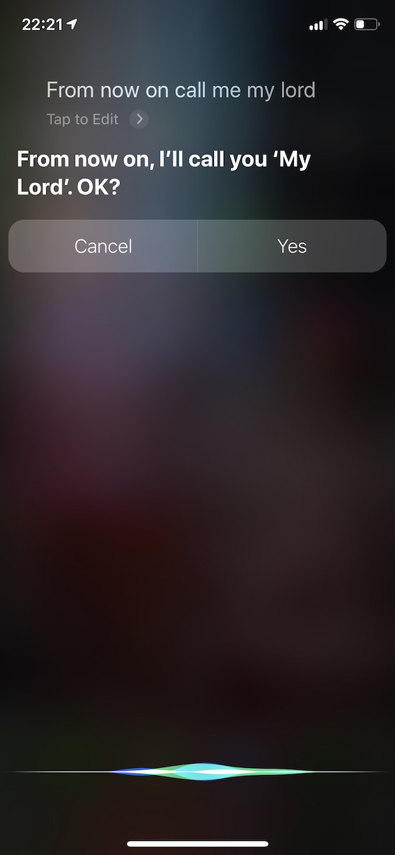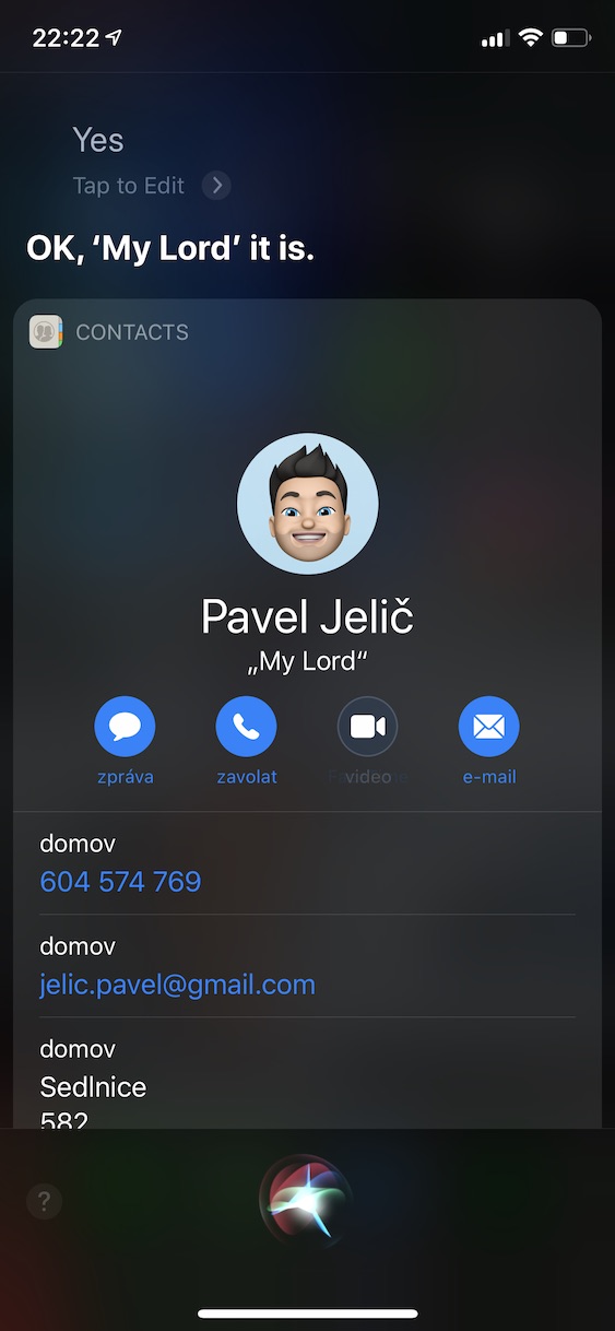 Postup je to velice jednoduchý. Jak už tušíte, tak bude nutné, abyste nejprve vyvolali Siri. To můžete udělat hned několika způsoby. Buď zvolíte možnost, kdy řeknete „Hey Siri“, a ta se vám sama ozve, anebo využijete gest, která dokáží Siri vyvolat. Na zařízeních s domovským tlačítkem stačí, abyste jej podrželi, v případě zařízení bez domovské tlačítka stačí, abyste podrželi tlačítko boční, které slouží k odemčení či zamčení iPhonu (či iPadu). Jakmile se prostředí pro příkazy Siri objeví, tak řekněte větu: „From now on call me _____“. Namísto podtržítek samozřejmě vyslovte, jakou přezdívku chcete využít. Já jsem si ku příkladu zvolil přezdívku My Lord, tudíž řeknu větu „From now on call me My Lord.“ Jakmile Siri tento příkaz rozpozná, tak se vás doopravdy zeptá, zde vám má takhle říkat. Vám už poté nezbývá nic jiného, než volbu potvrdit.