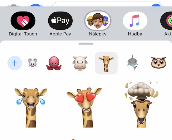 - Nad klávesnicí se vám objeví malé ikony – klepněte na položku „Samolepky“ s ikonou obličejů.